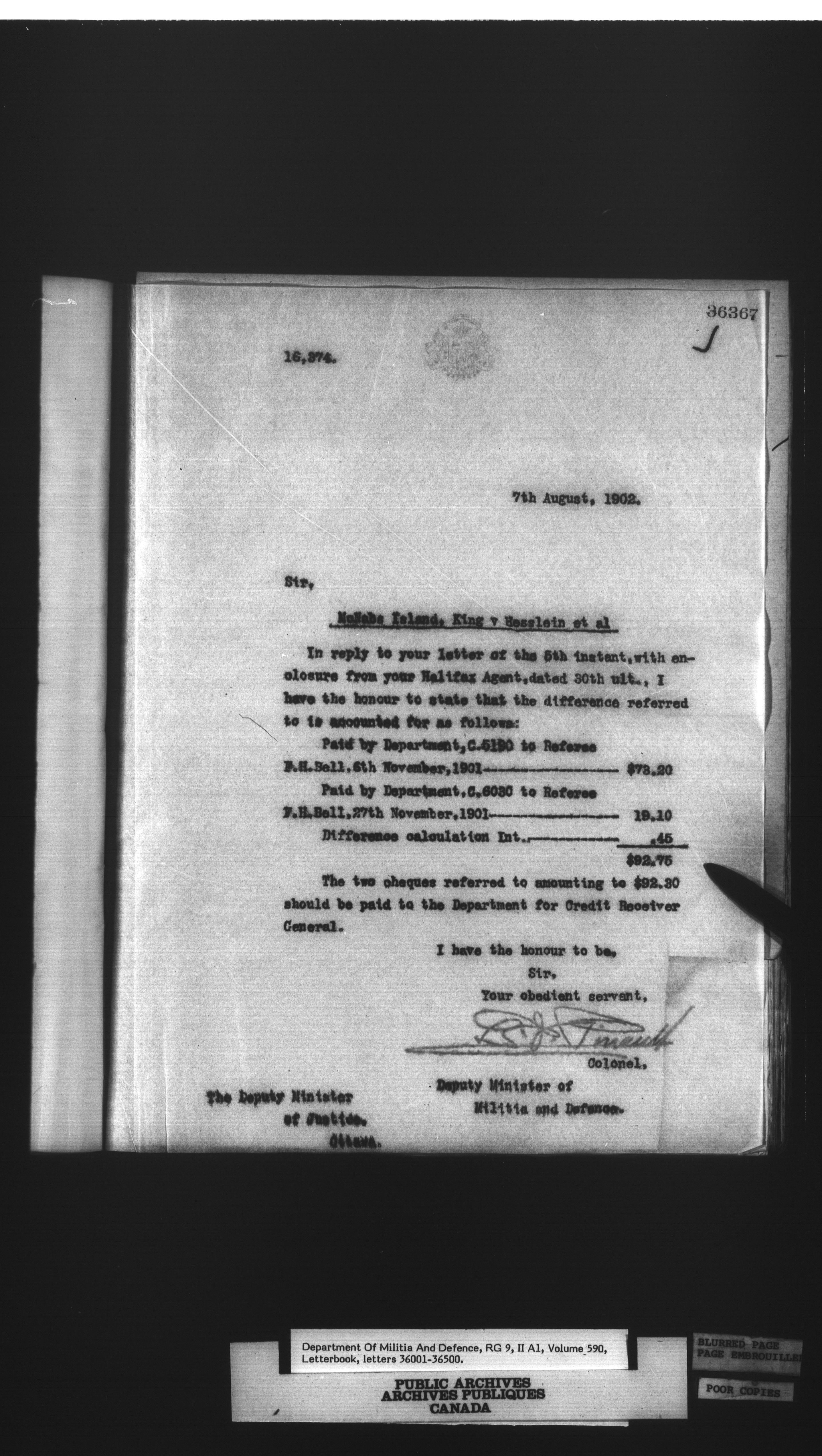 Letterbooks of the deputy minister and the adjutant general, 1868-1920 - 266