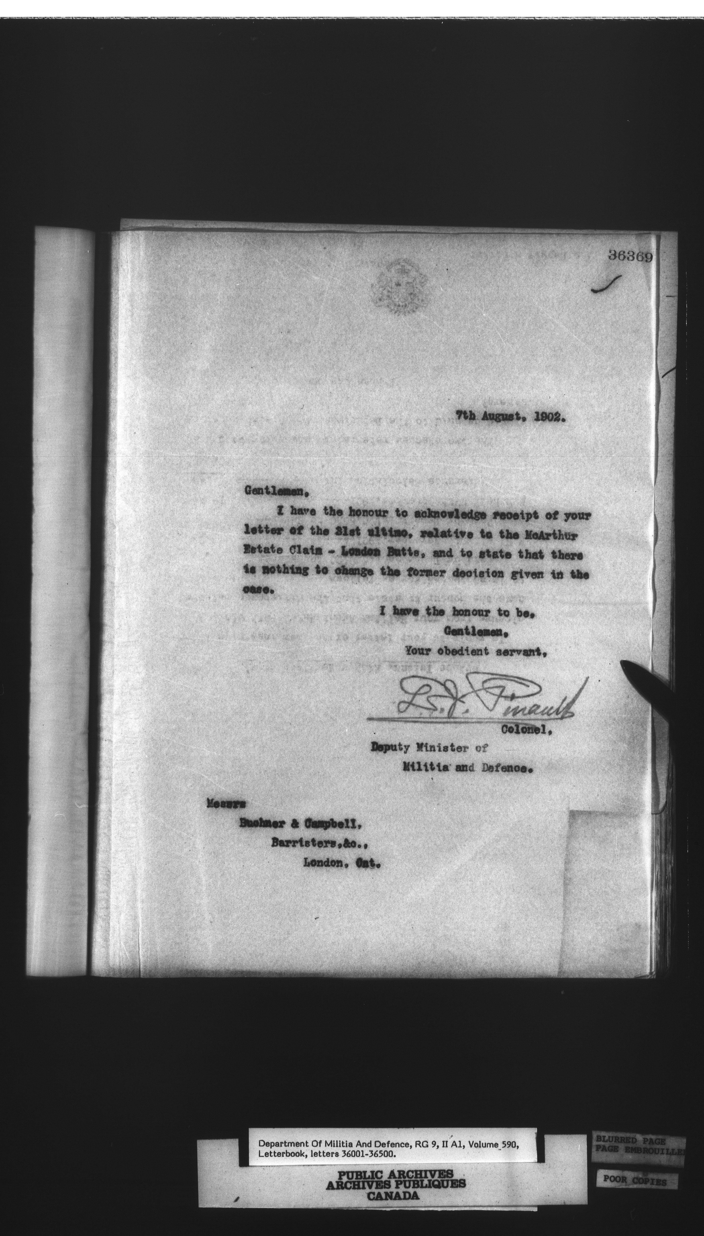 Letterbooks of the deputy minister and the adjutant general, 1868-1920 - 266