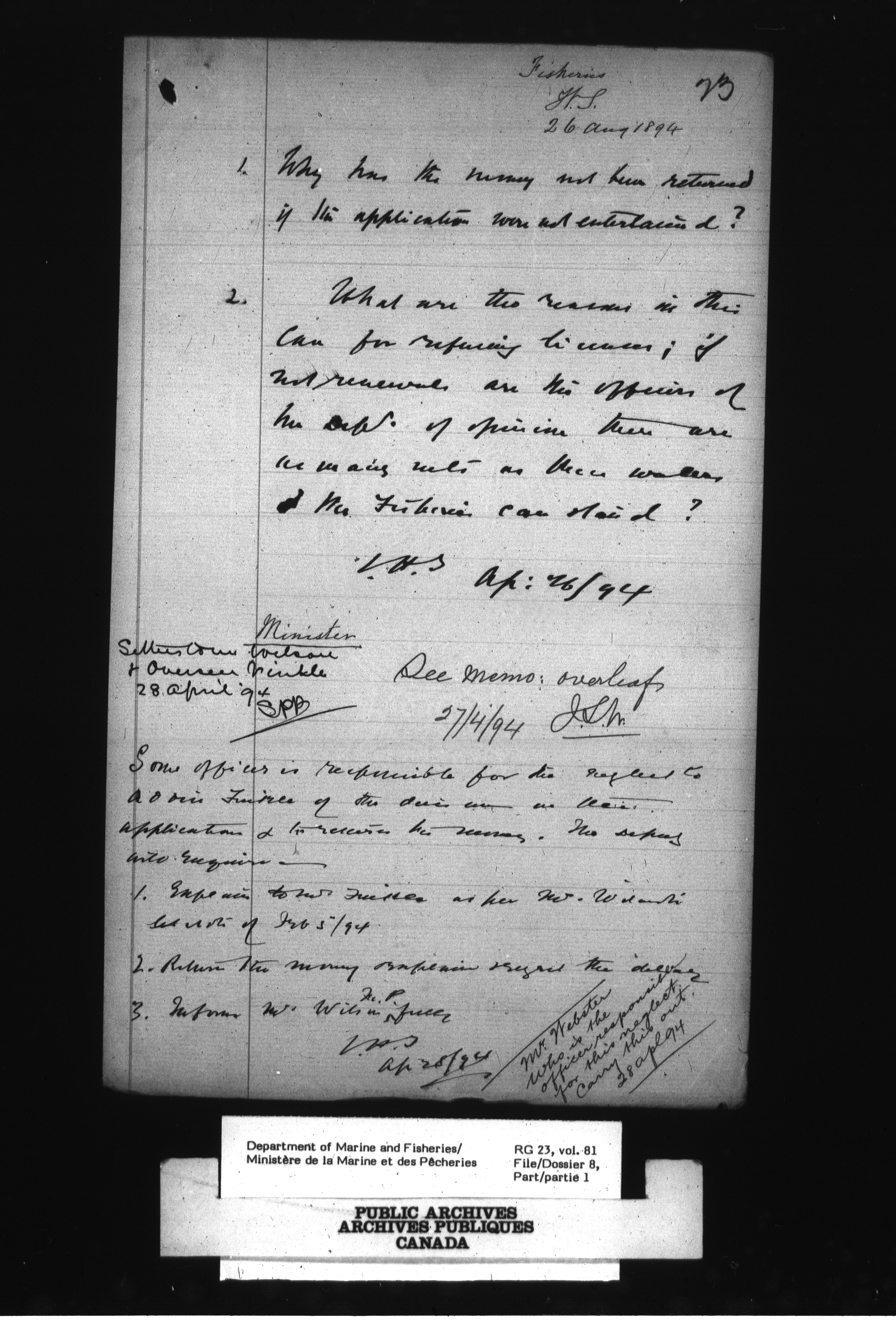 Fisheries Branch Registry files - 2666