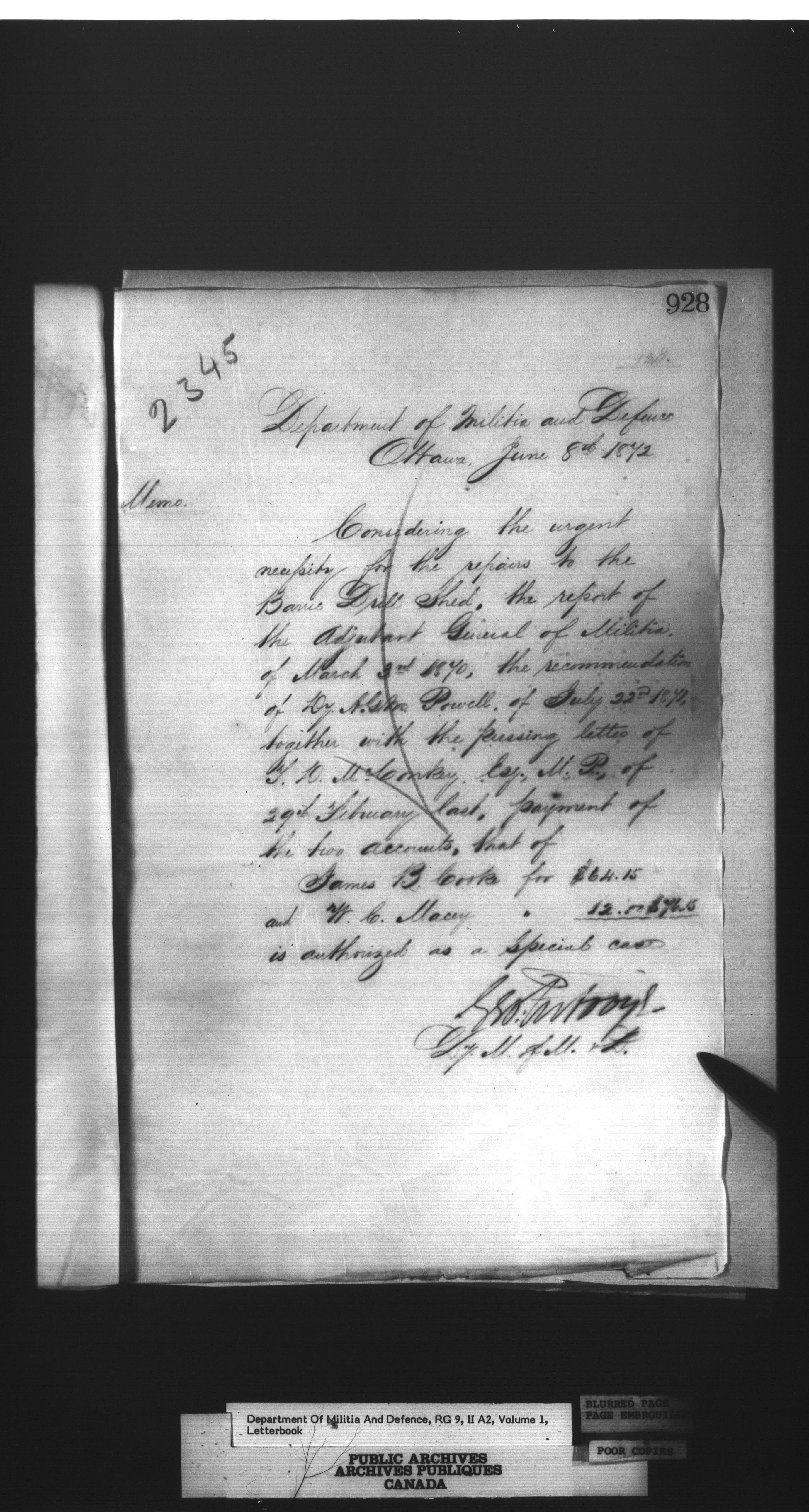 Letterbooks of the deputy minister and the adjutant general, 1868-1920 - 268