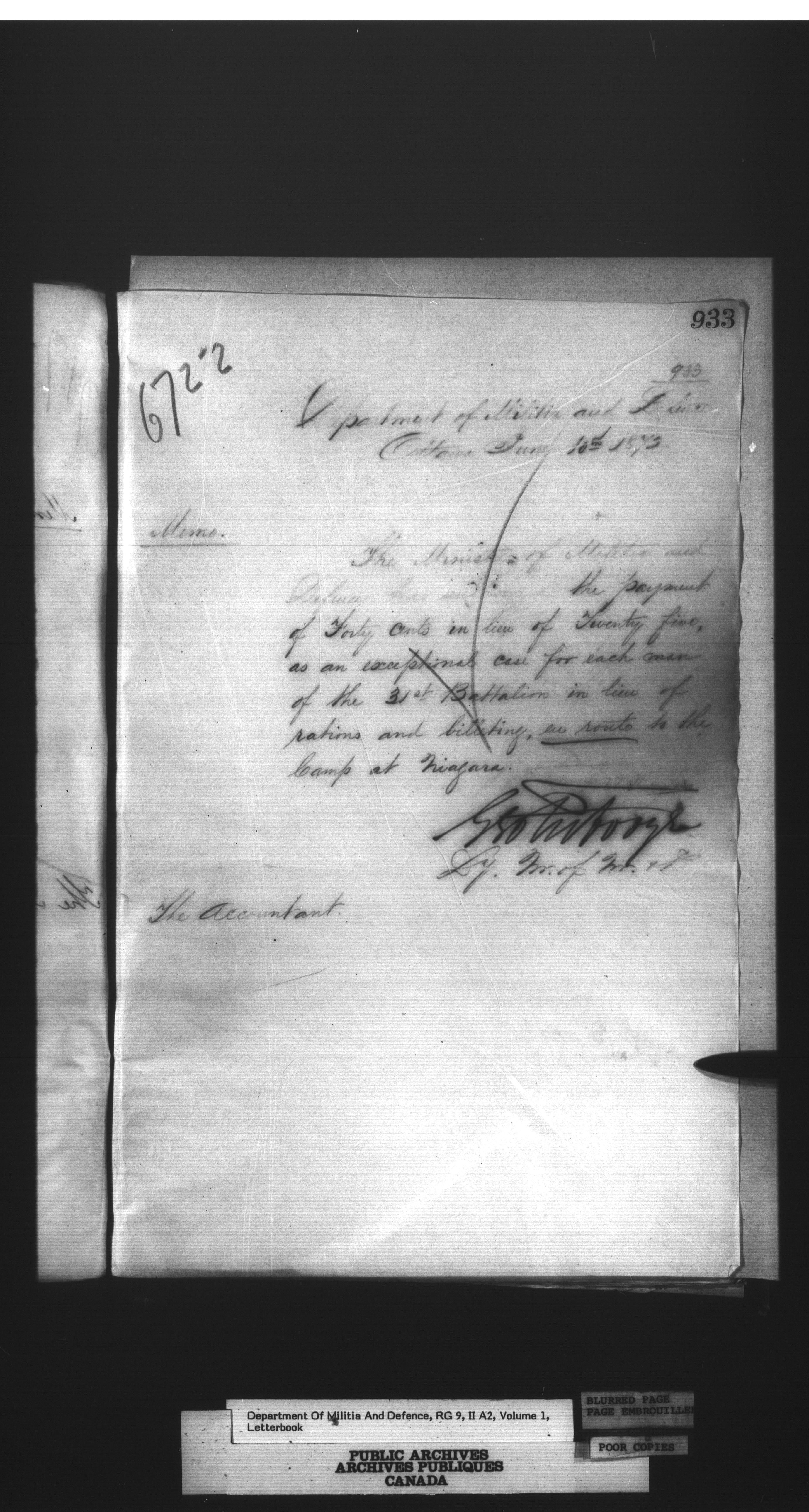 Letterbooks of the deputy minister and the adjutant general, 1868-1920 - 268