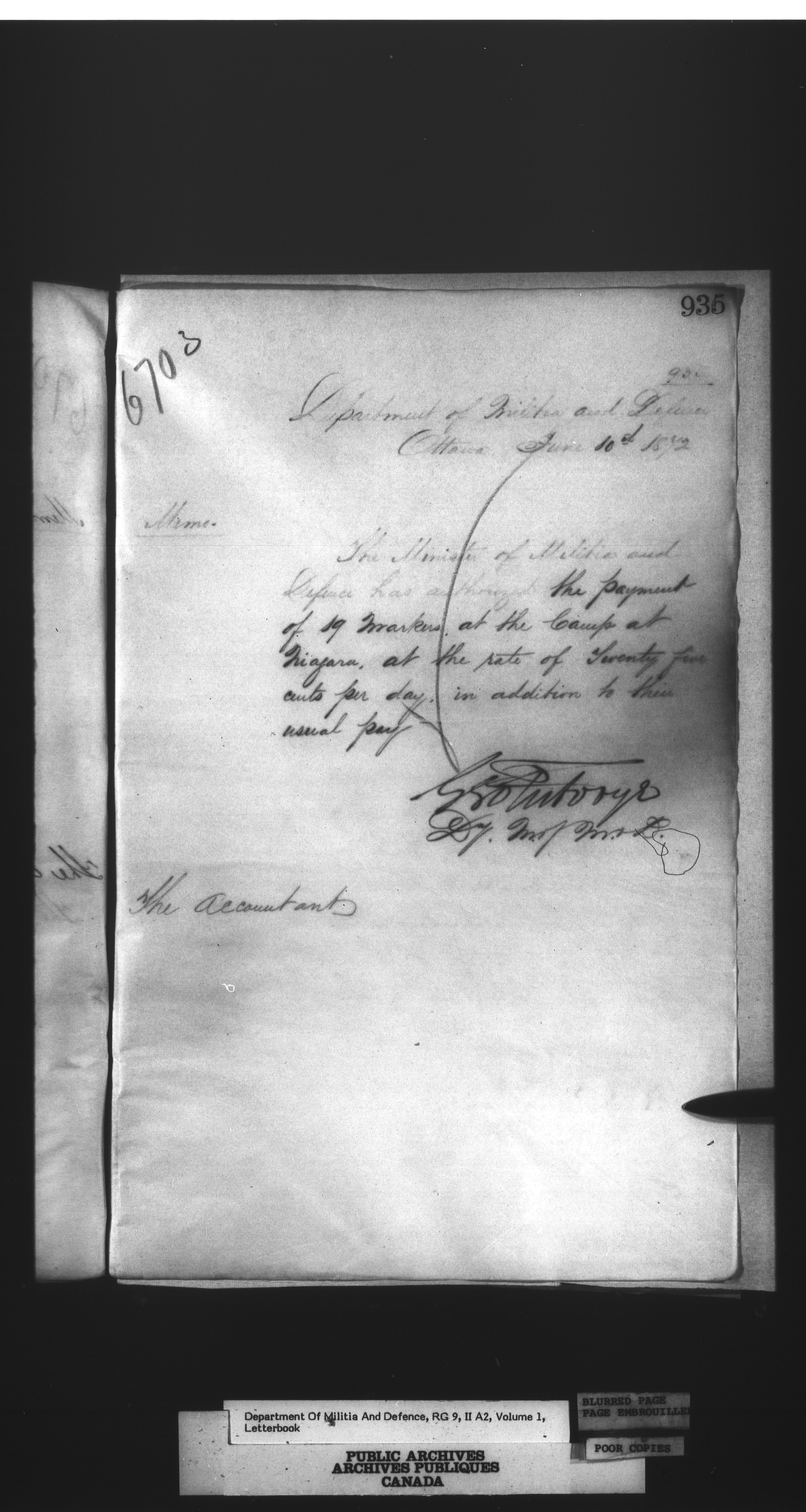 Letterbooks of the deputy minister and the adjutant general, 1868-1920 - 268