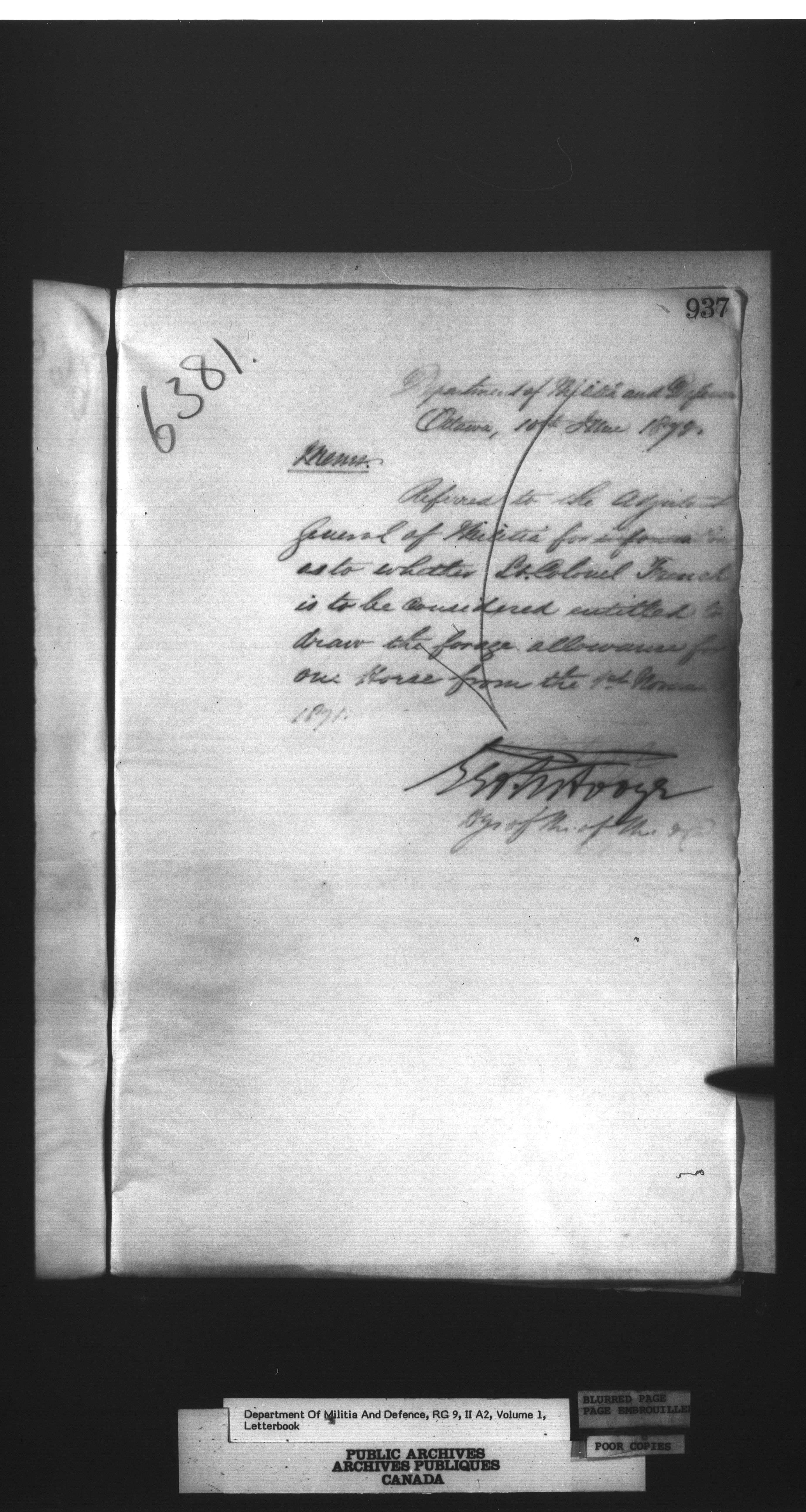 Letterbooks of the deputy minister and the adjutant general, 1868-1920 - 268