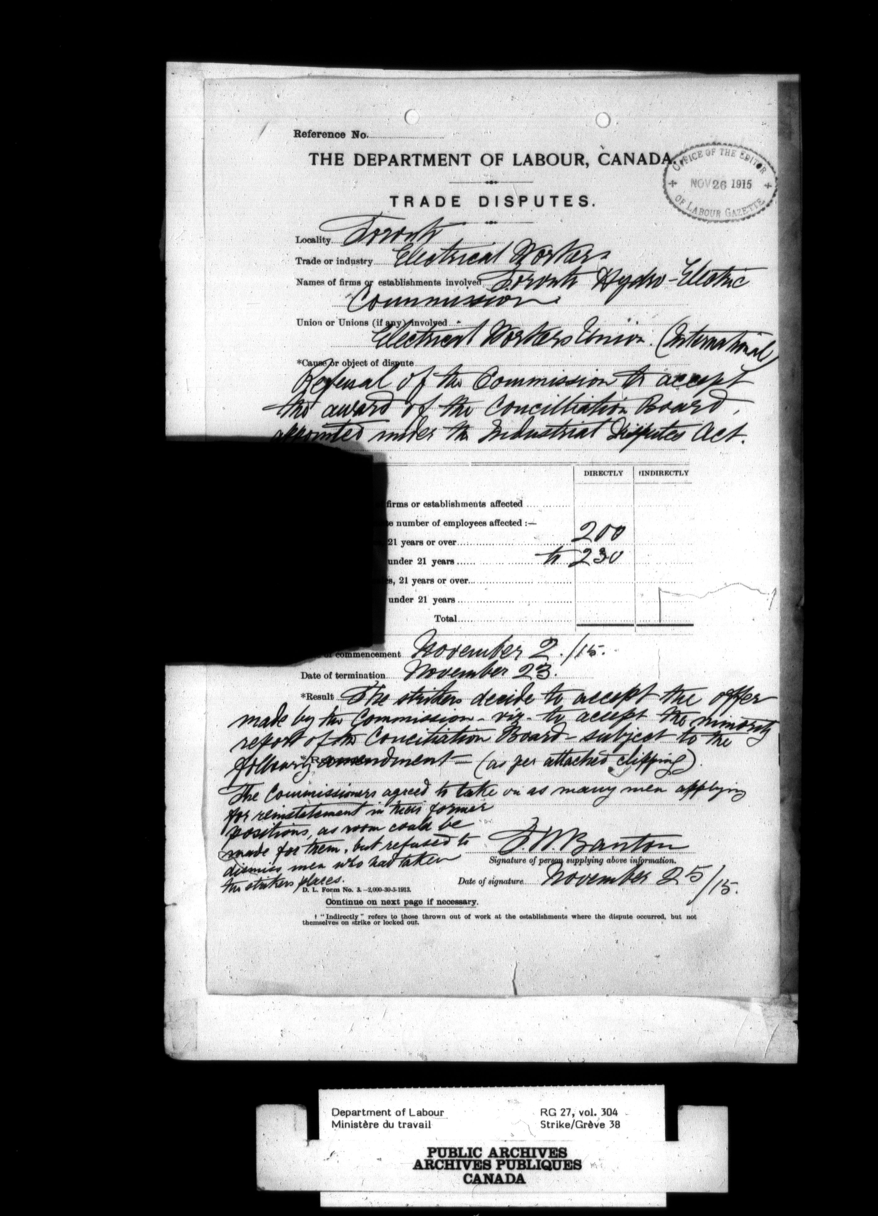 Department of Labour, Economics and Research Branch : Strikes and lockout files - 2691