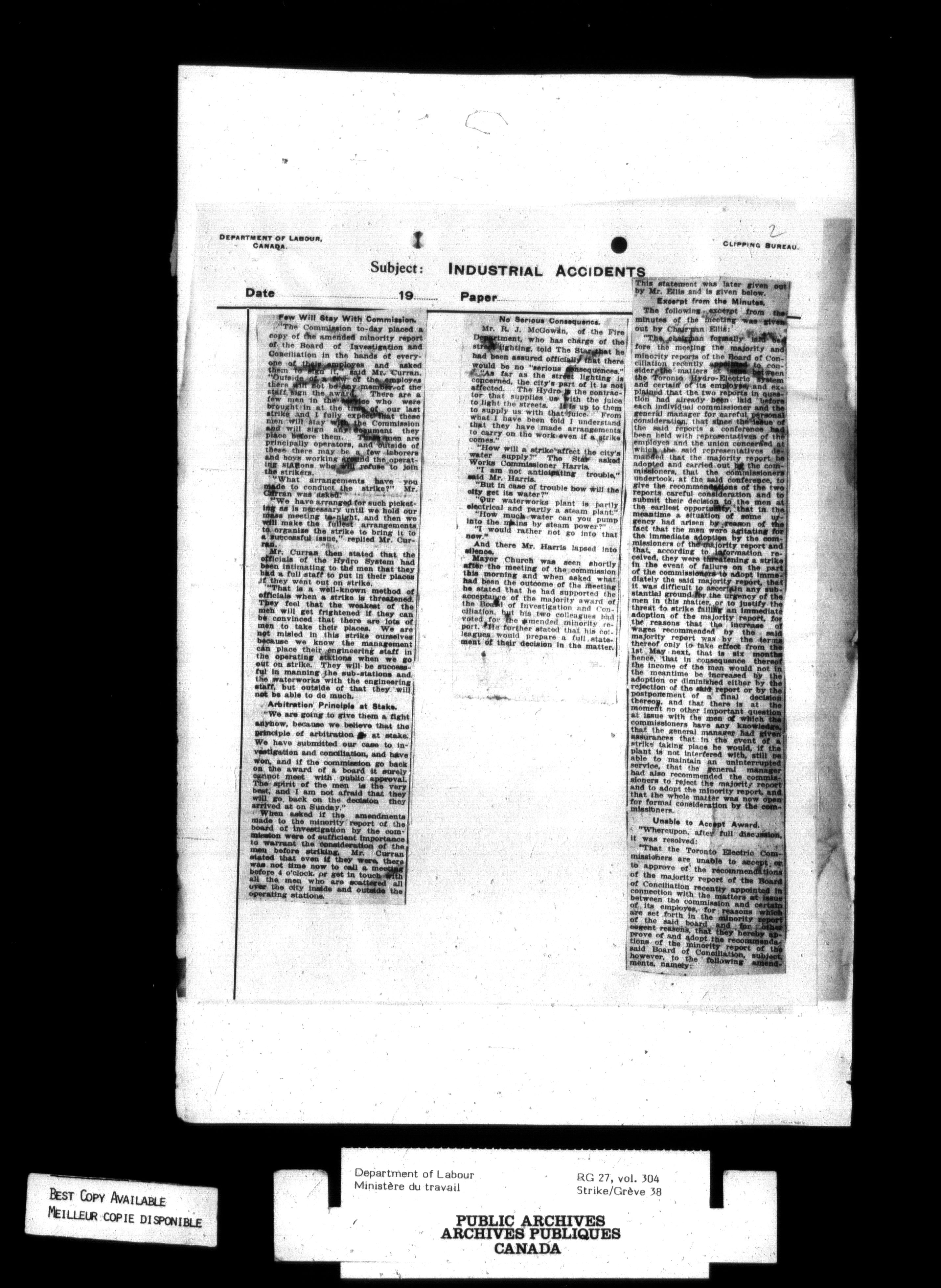 Department of Labour, Economics and Research Branch : Strikes and lockout files - 2691