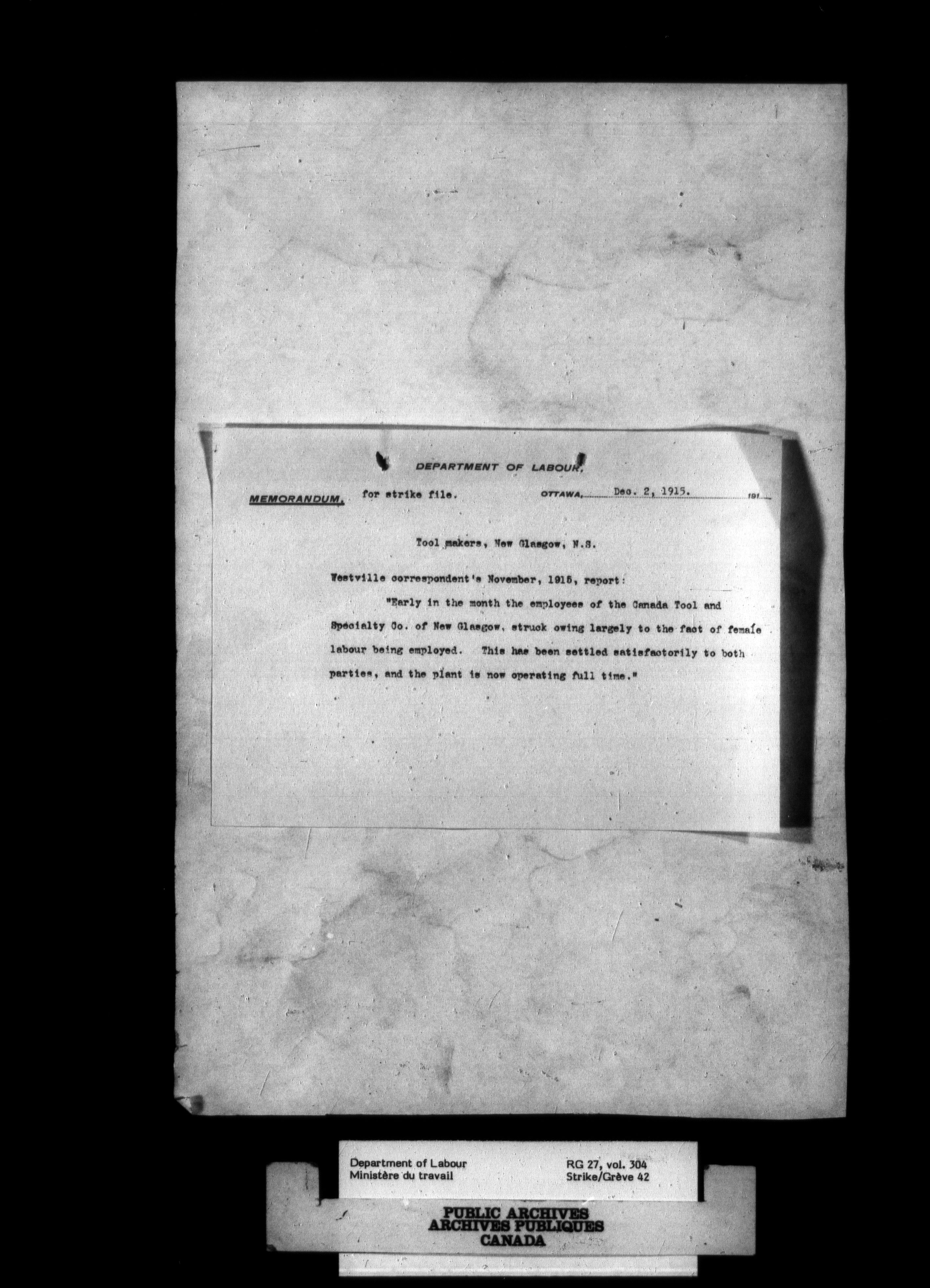 Department of Labour, Economics and Research Branch : Strikes and lockout files - 2691