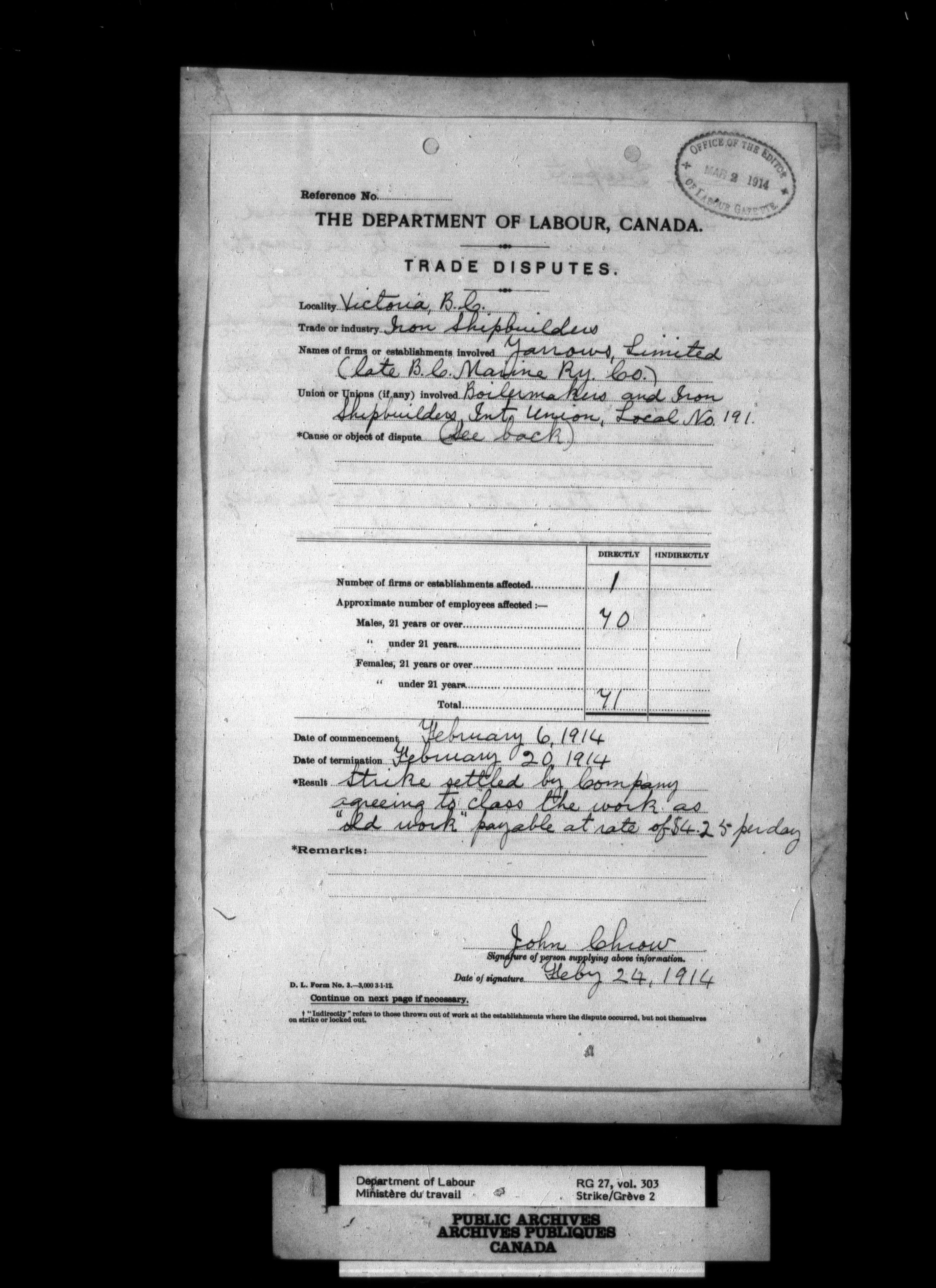 Department of Labour, Economics and Research Branch : Strikes and lockout files : T-2691