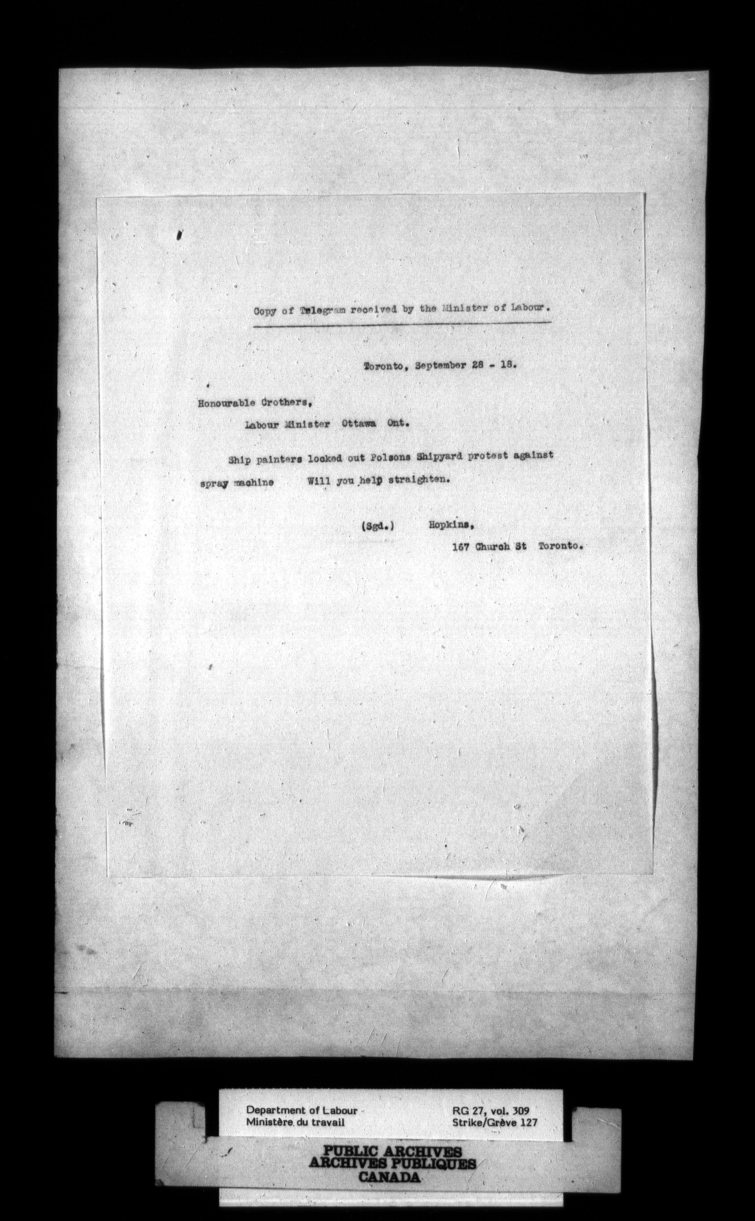 Department of Labour, Economics and Research Branch : Strikes and lockout files : T-2696