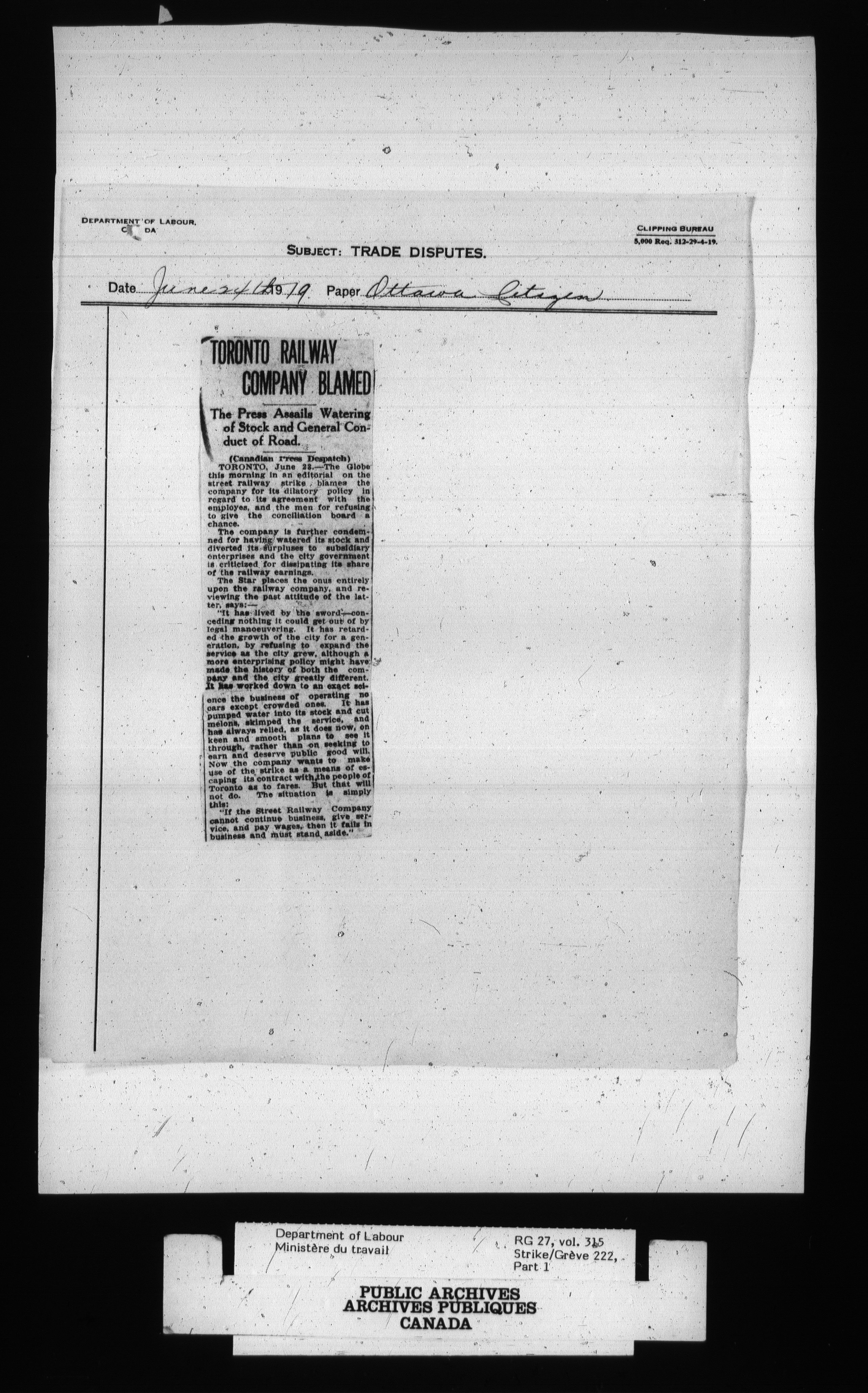 Department of Labour, Economics and Research Branch : Strikes and lockout files - 2701