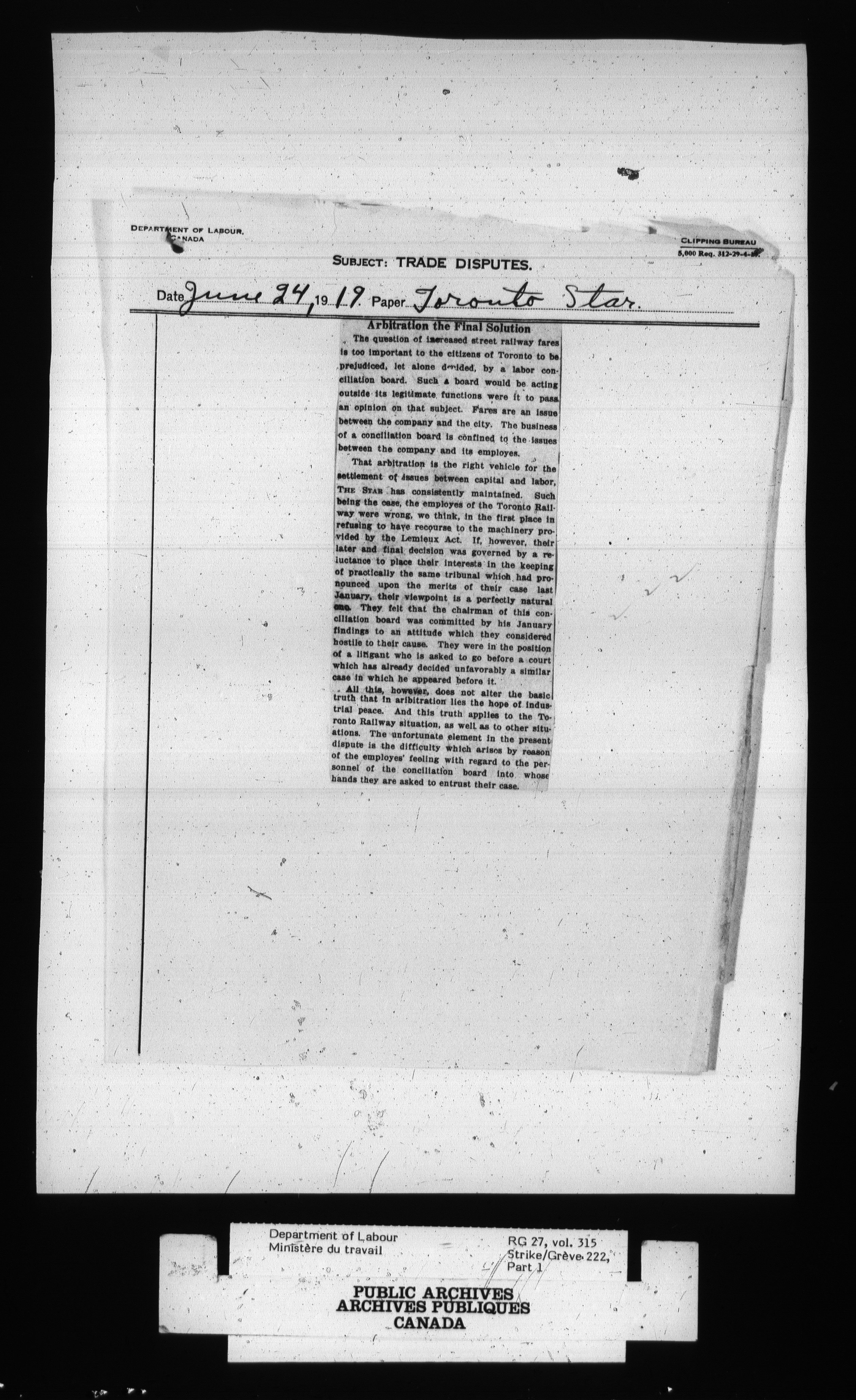 Department of Labour, Economics and Research Branch : Strikes and lockout files - 2701
