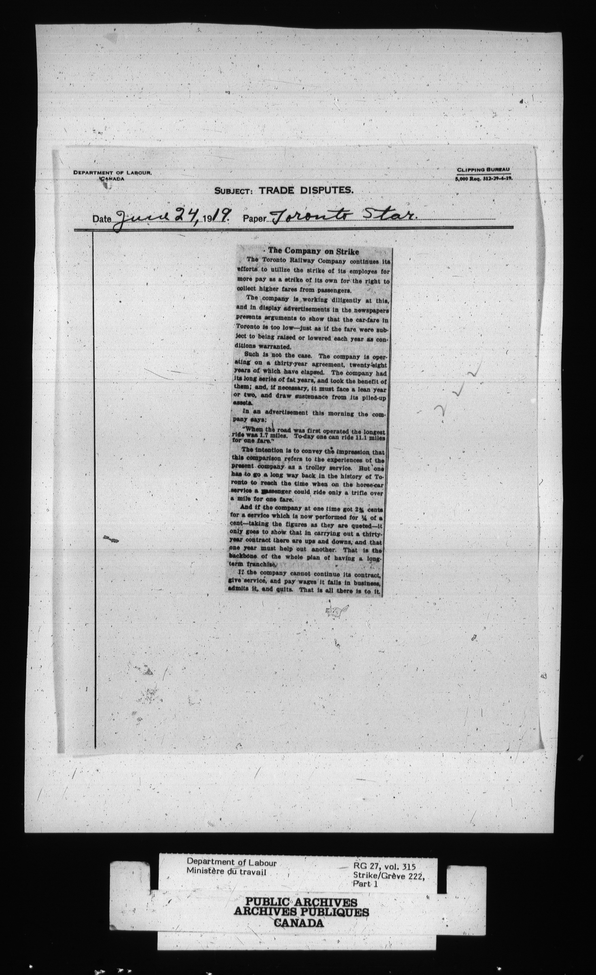Department of Labour, Economics and Research Branch : Strikes and lockout files - 2701