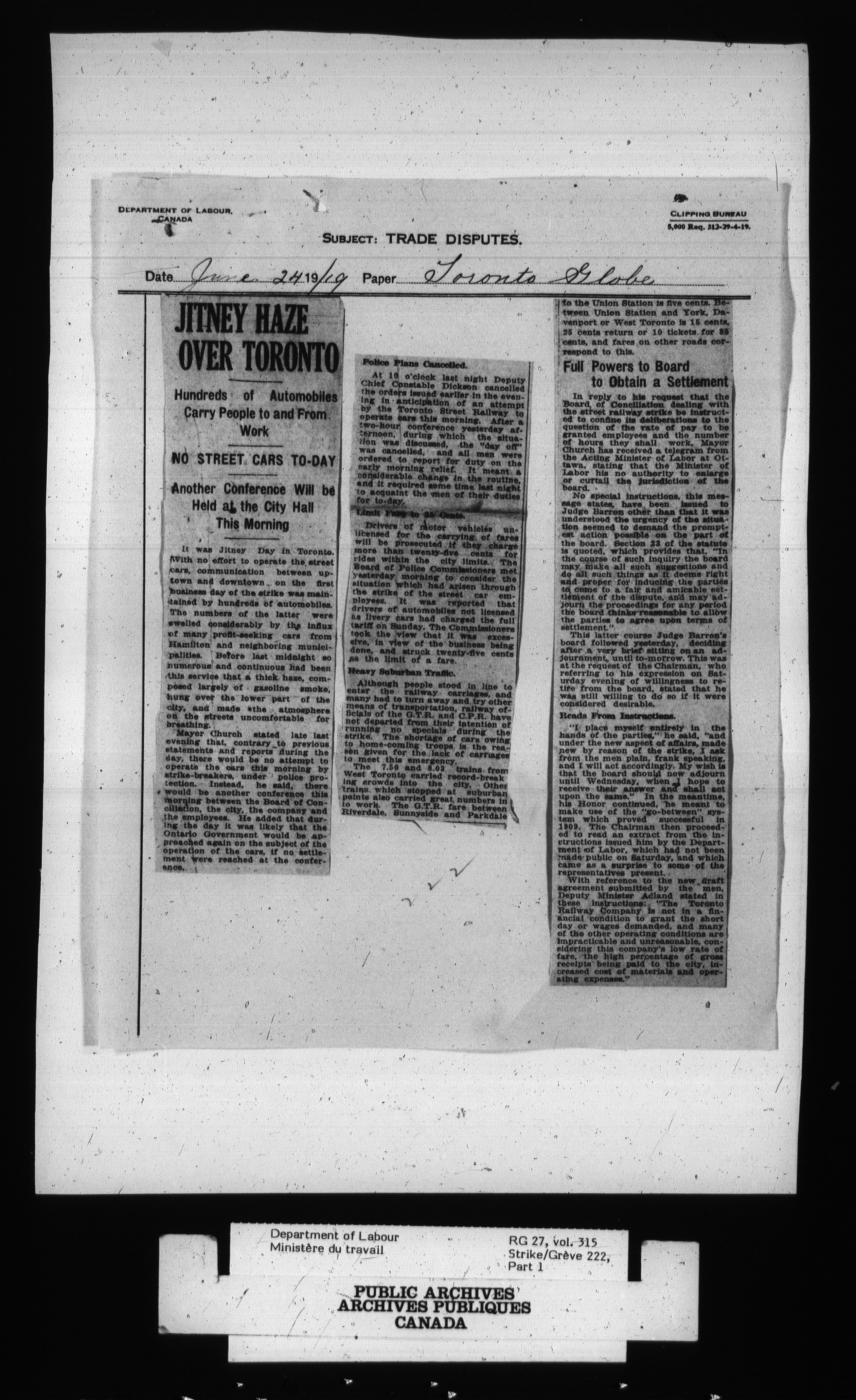 Department of Labour, Economics and Research Branch : Strikes and lockout files - 2701