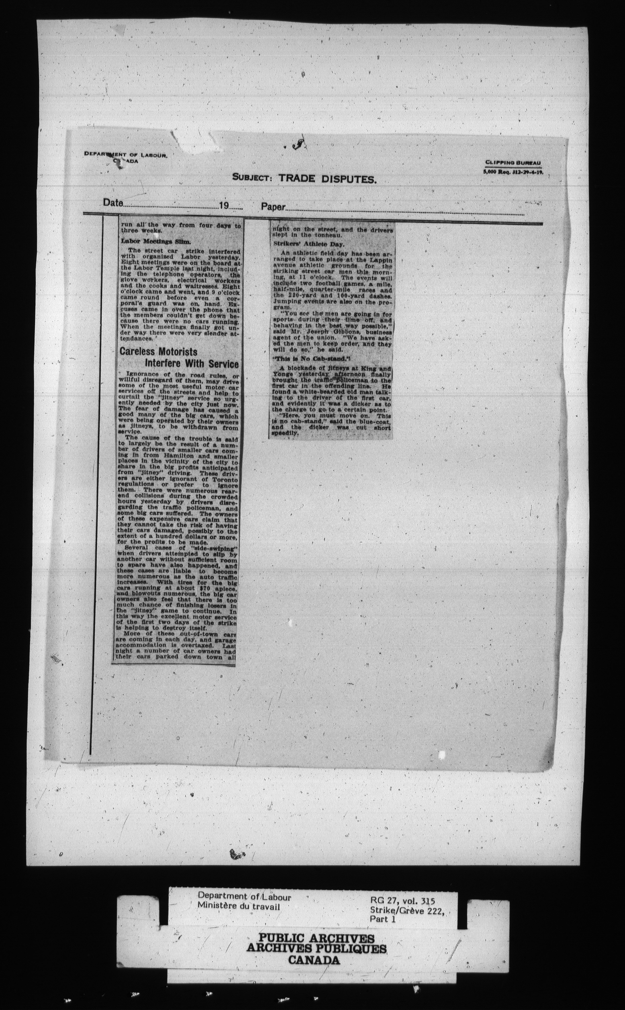 Department of Labour, Economics and Research Branch : Strikes and lockout files - 2701