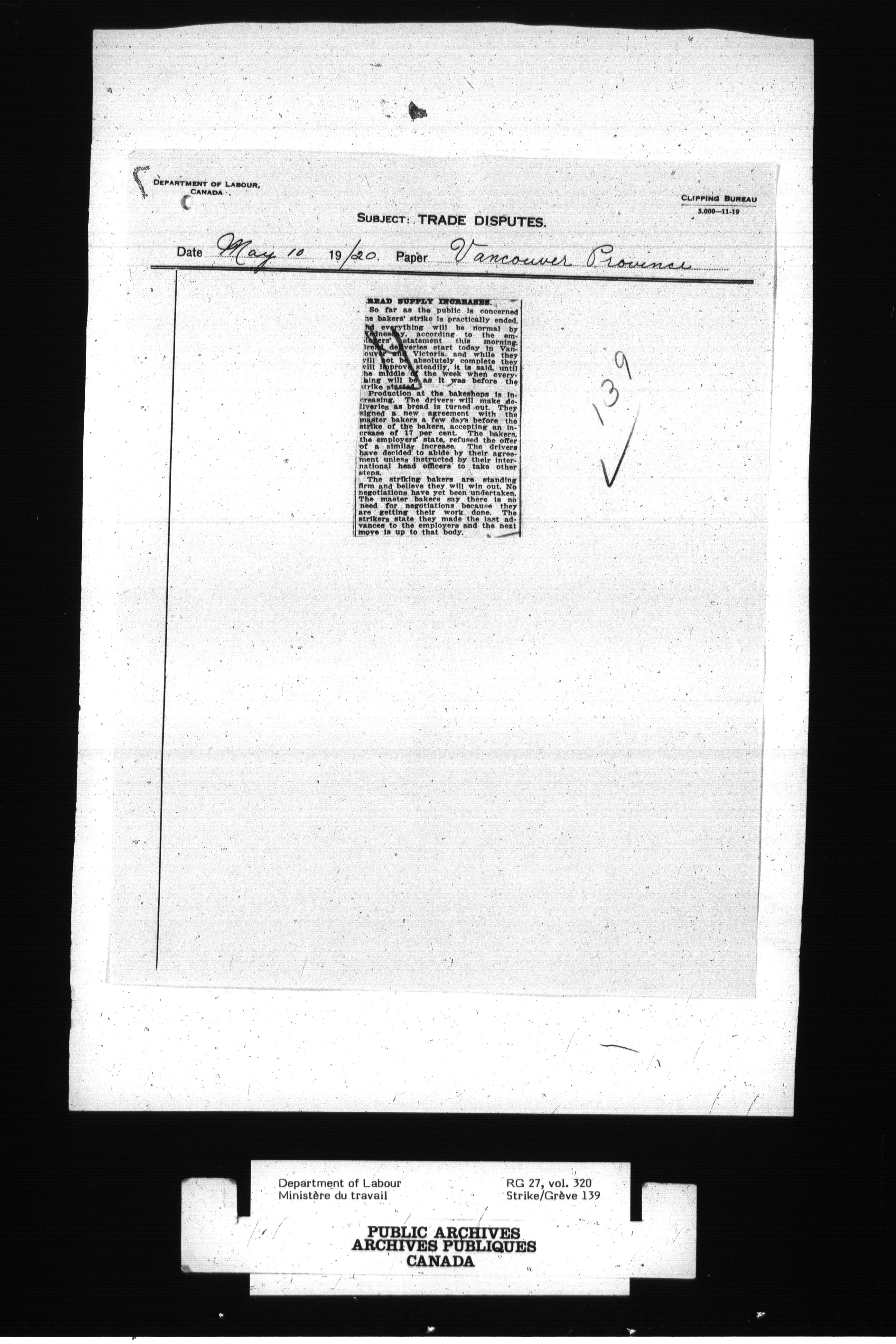 Department of Labour, Economics and Research Branch : Strikes and lockout files - 2704