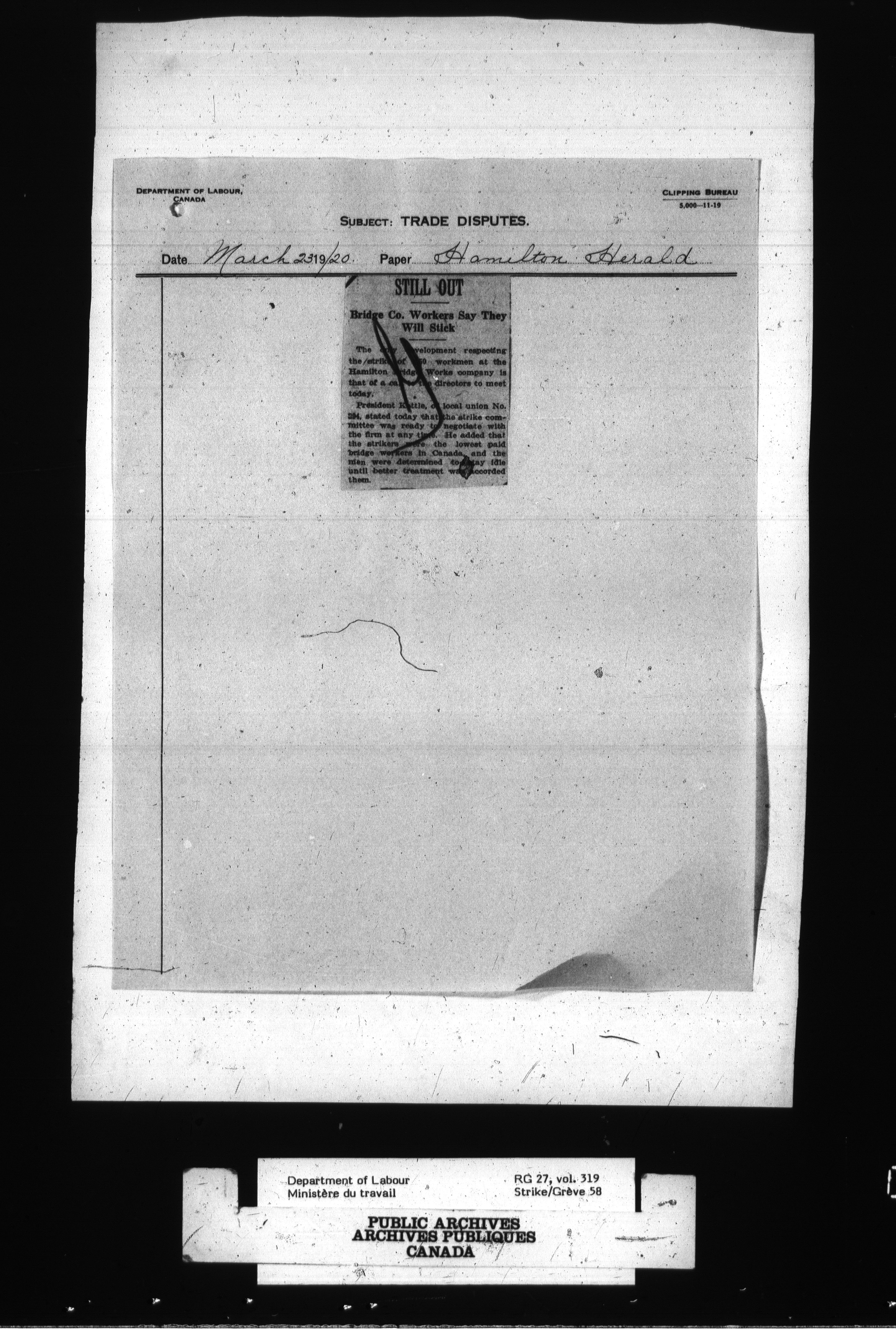 Department of Labour, Economics and Research Branch : Strikes and lockout files - 2704