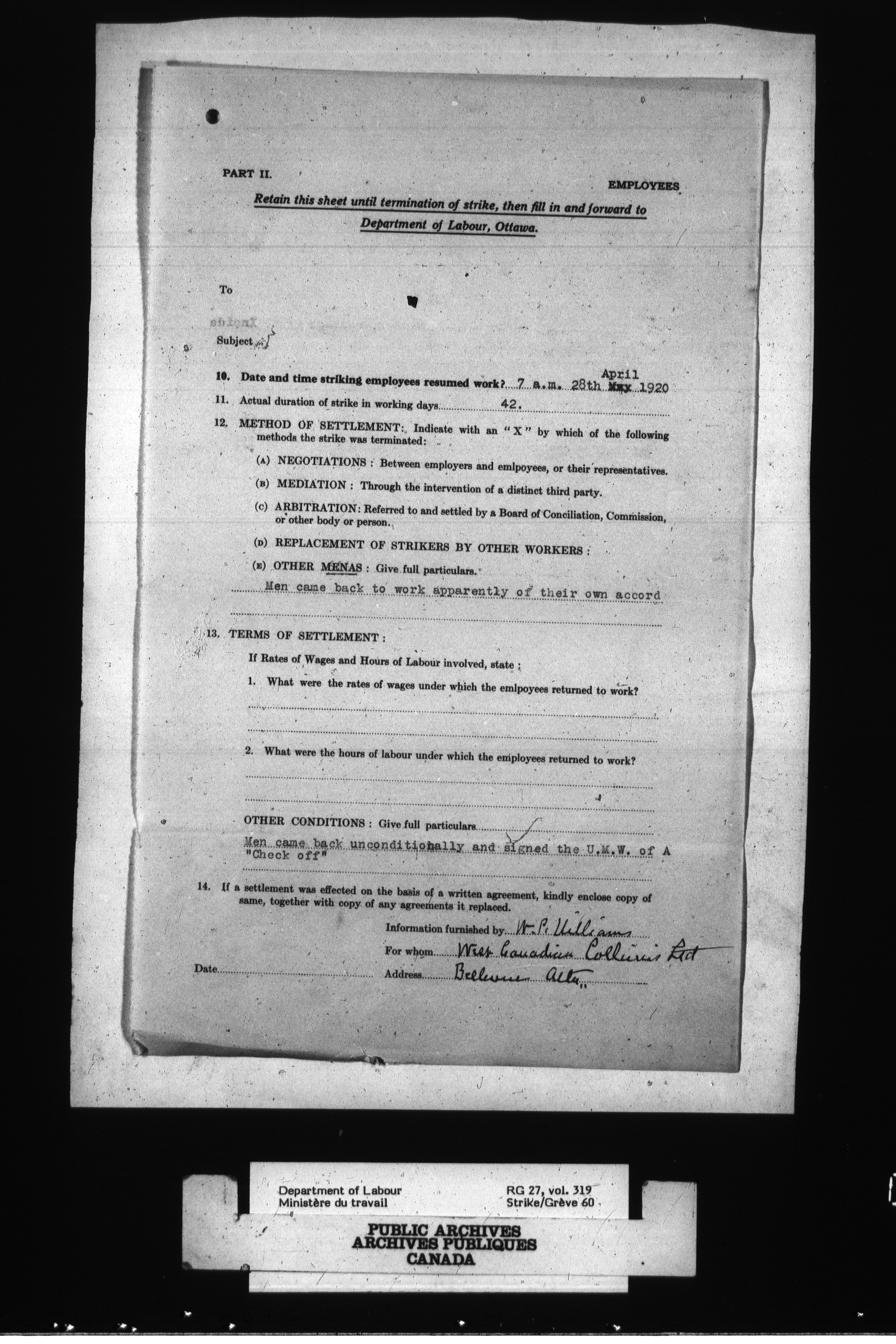 Department of Labour, Economics and Research Branch : Strikes and lockout files - 2704