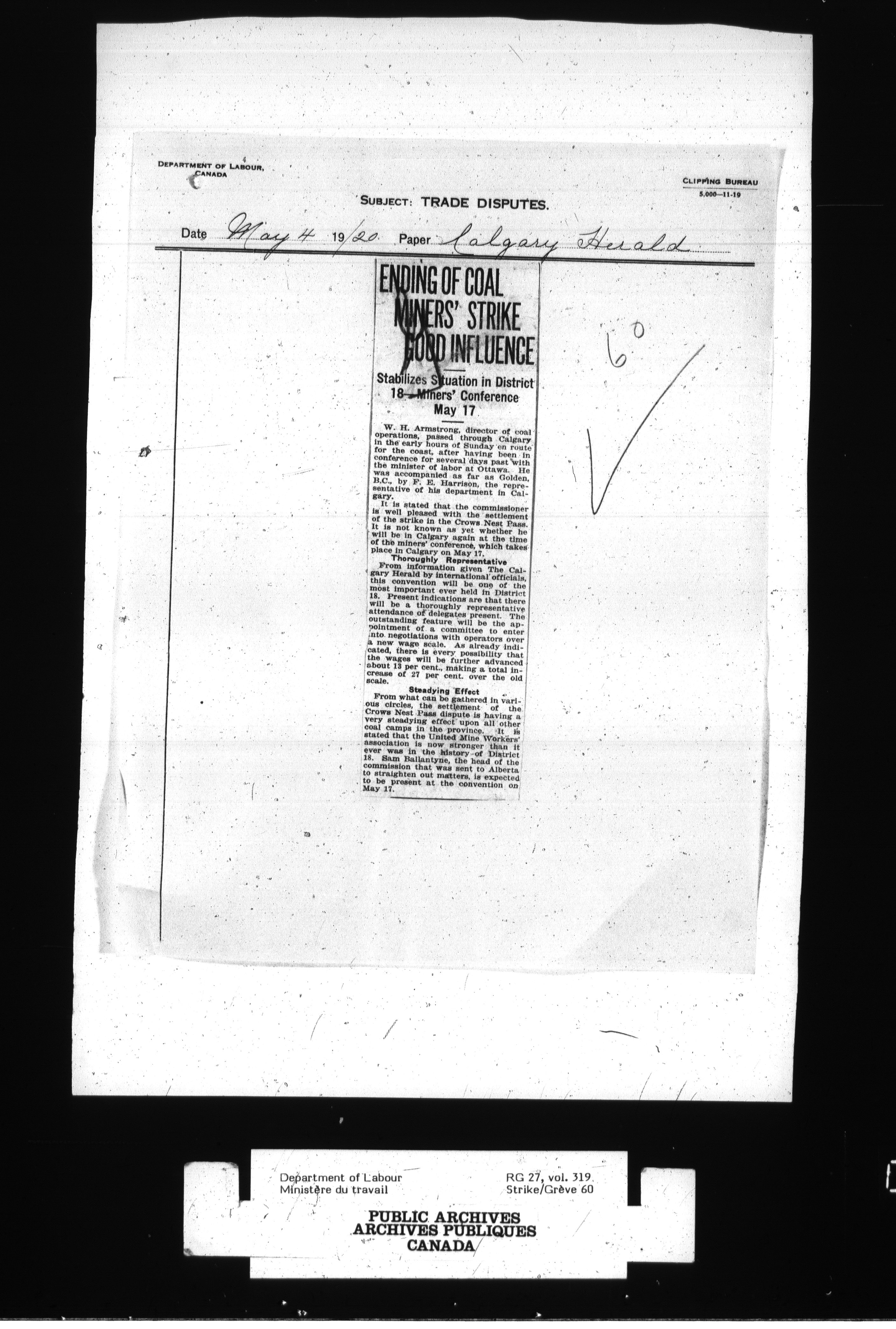 Department of Labour, Economics and Research Branch : Strikes and lockout files - 2704