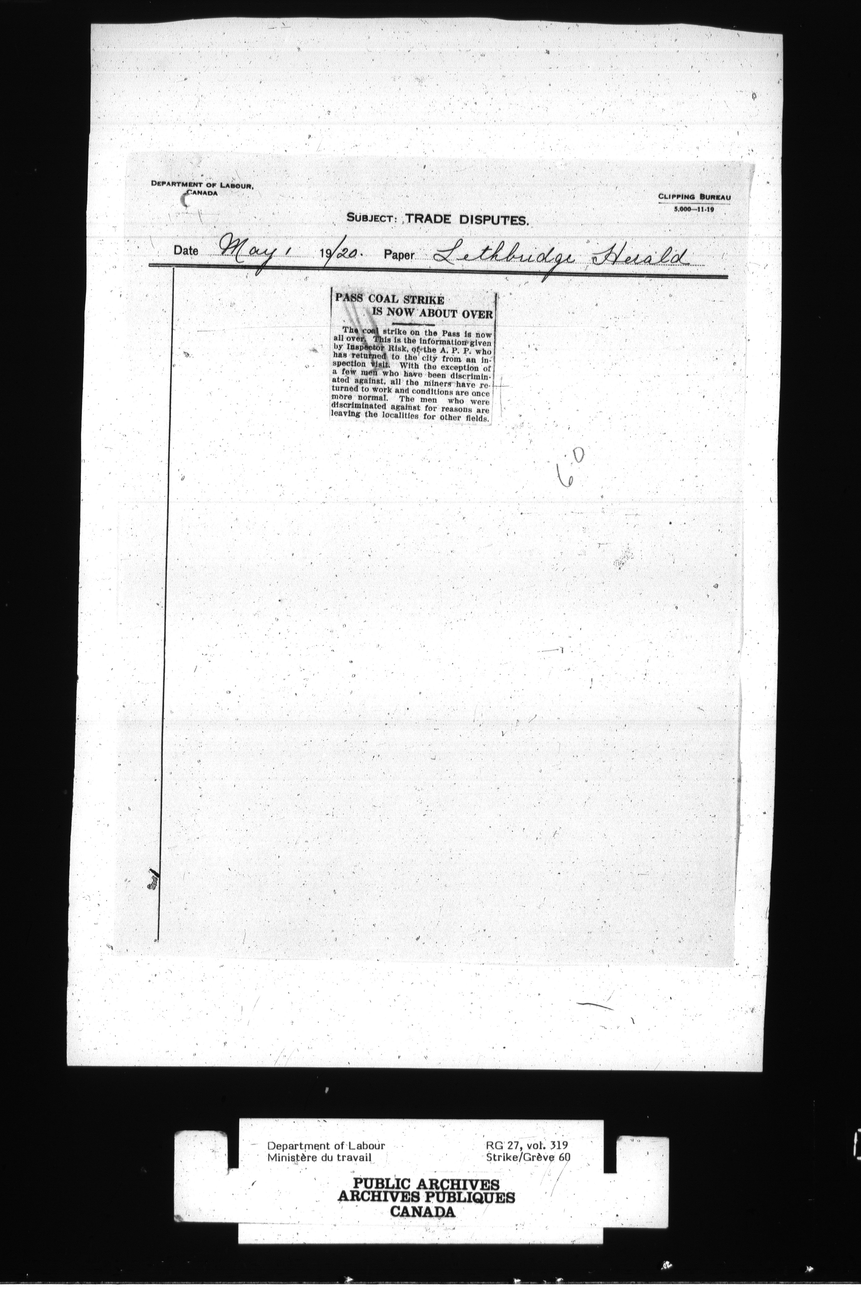 Department of Labour, Economics and Research Branch : Strikes and lockout files - 2704