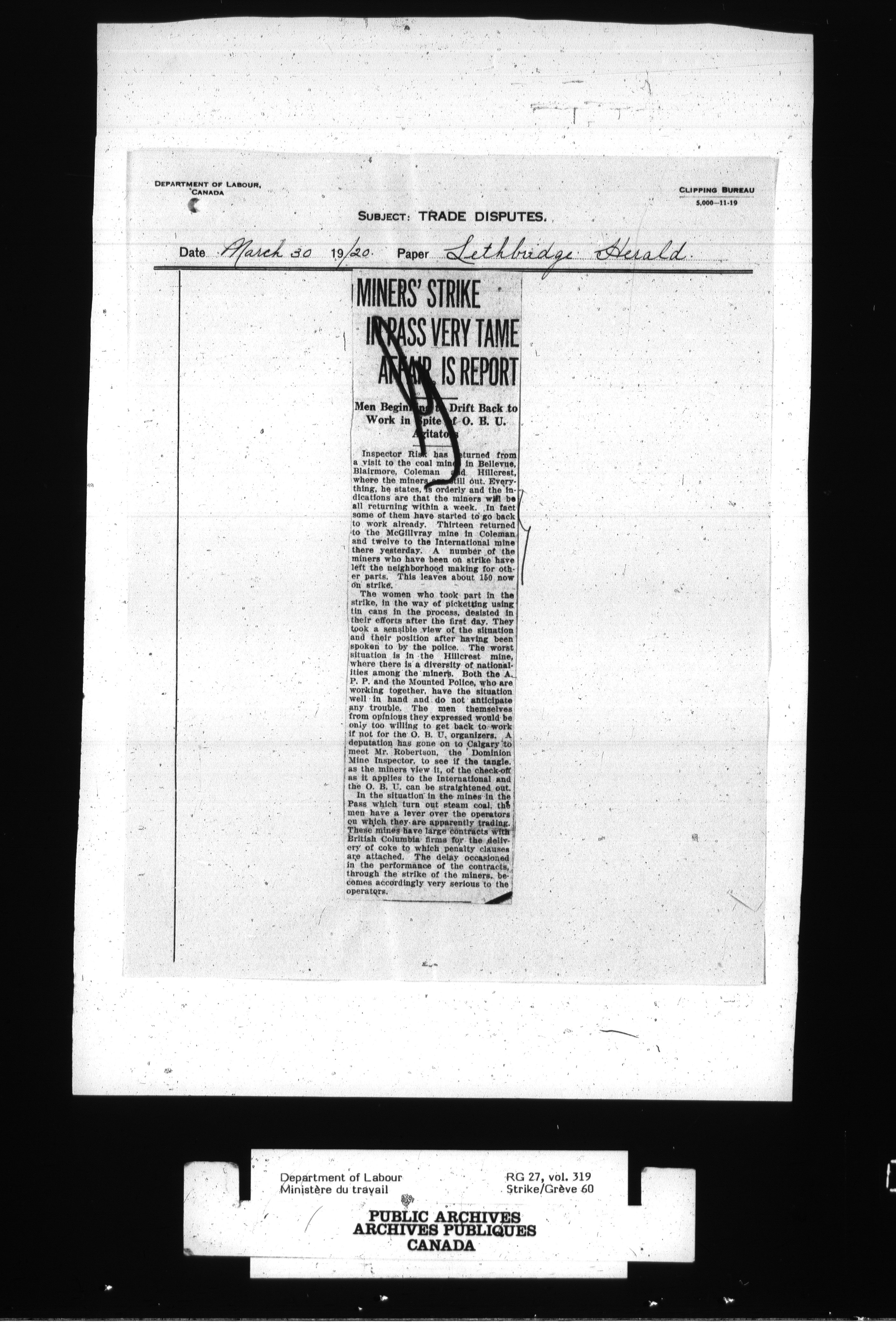 Department of Labour, Economics and Research Branch : Strikes and lockout files - 2704