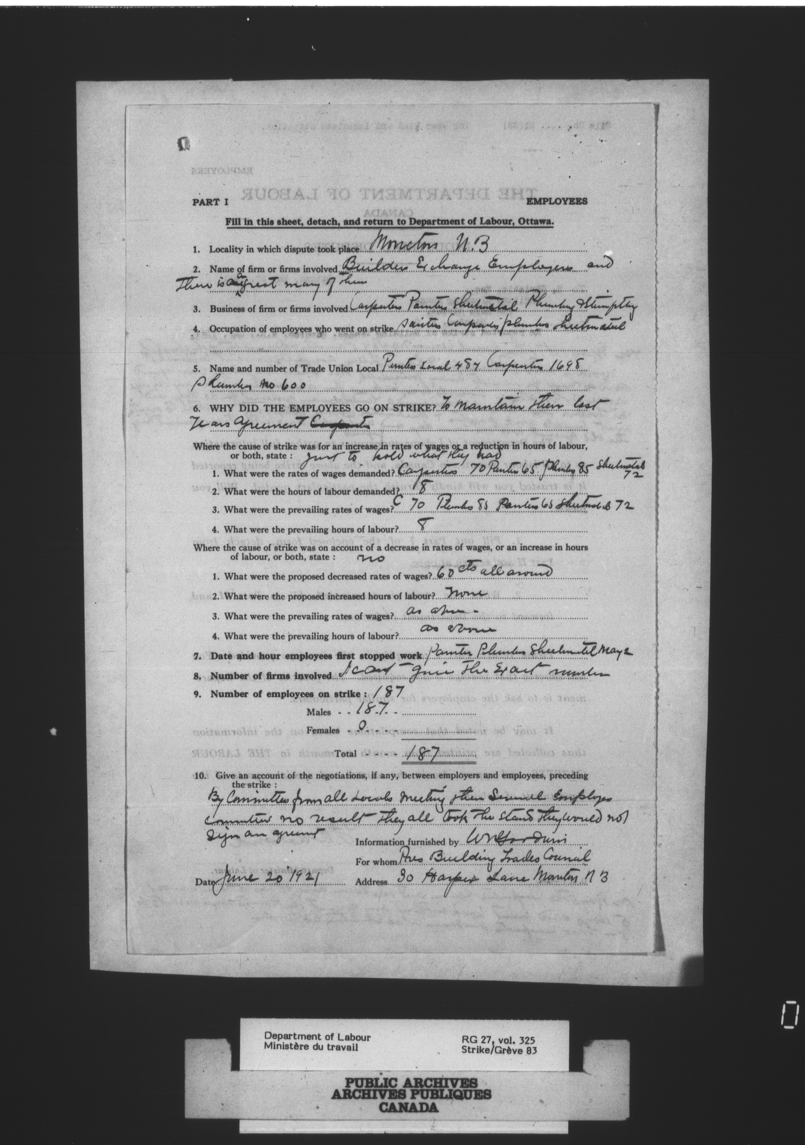 Department of Labour, Economics and Research Branch : Strikes and lockout files - 2709