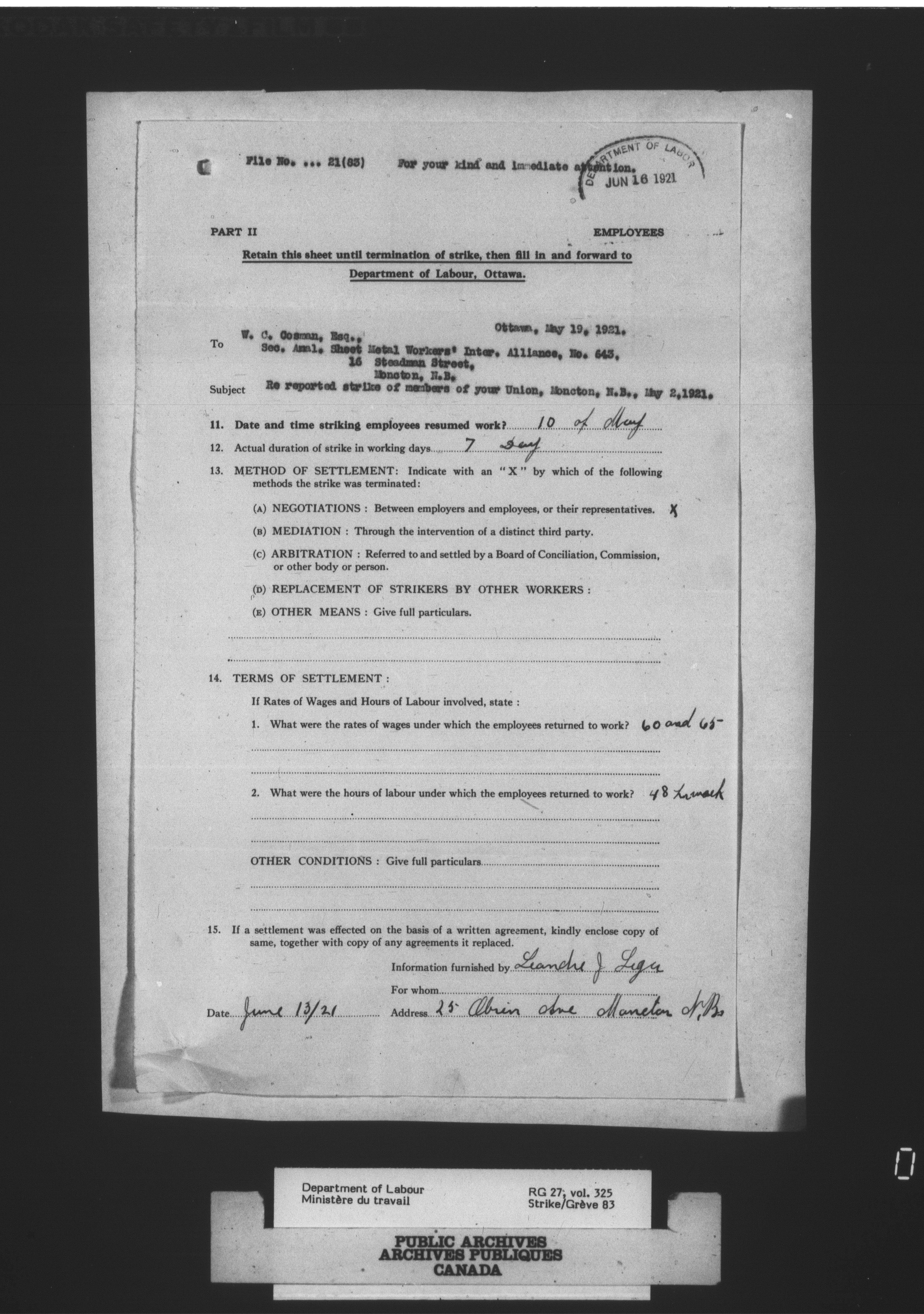 Department of Labour, Economics and Research Branch : Strikes and lockout files - 2709