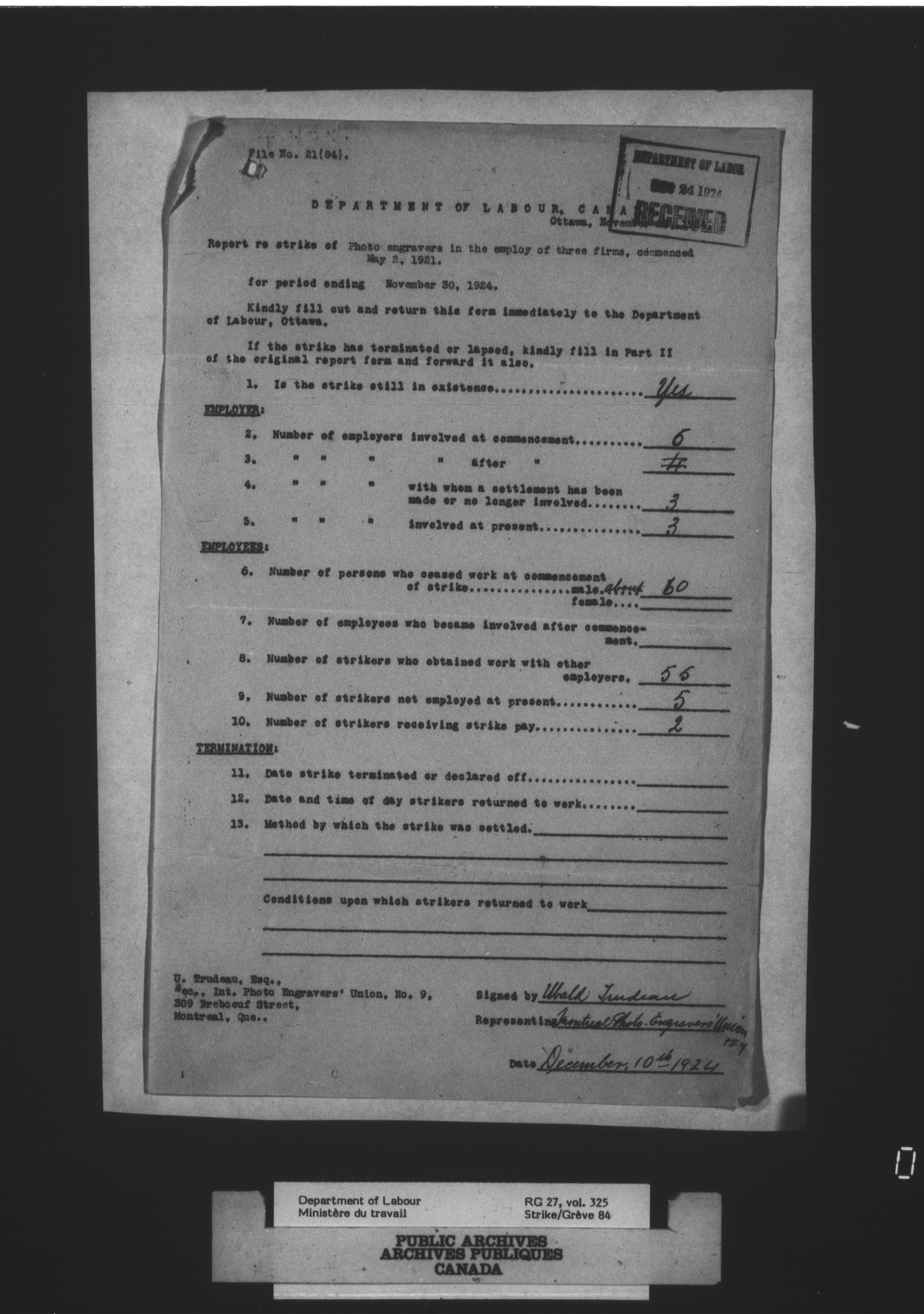 Department of Labour, Economics and Research Branch : Strikes and lockout files - 2709