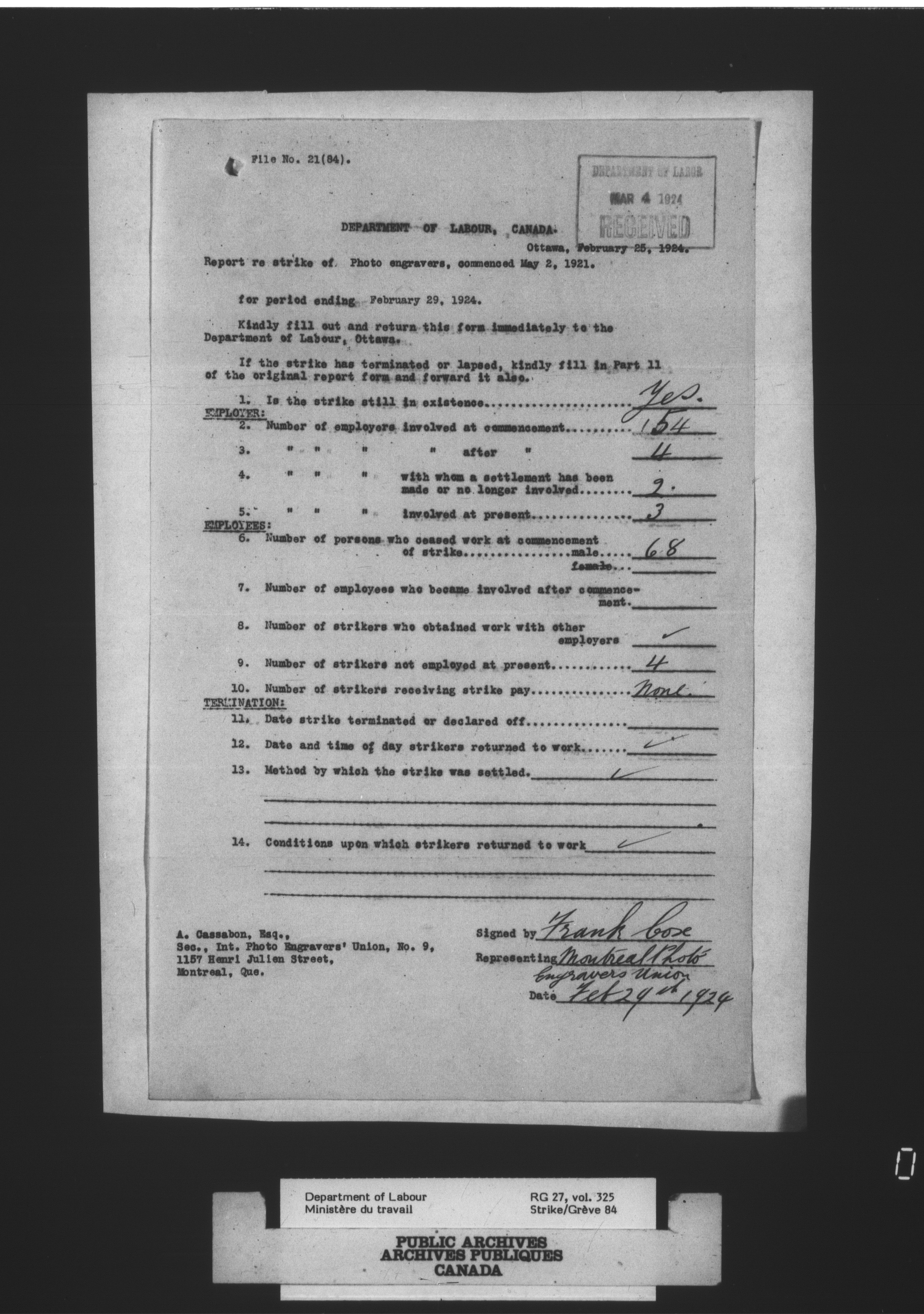 Department of Labour, Economics and Research Branch : Strikes and lockout files - 2709