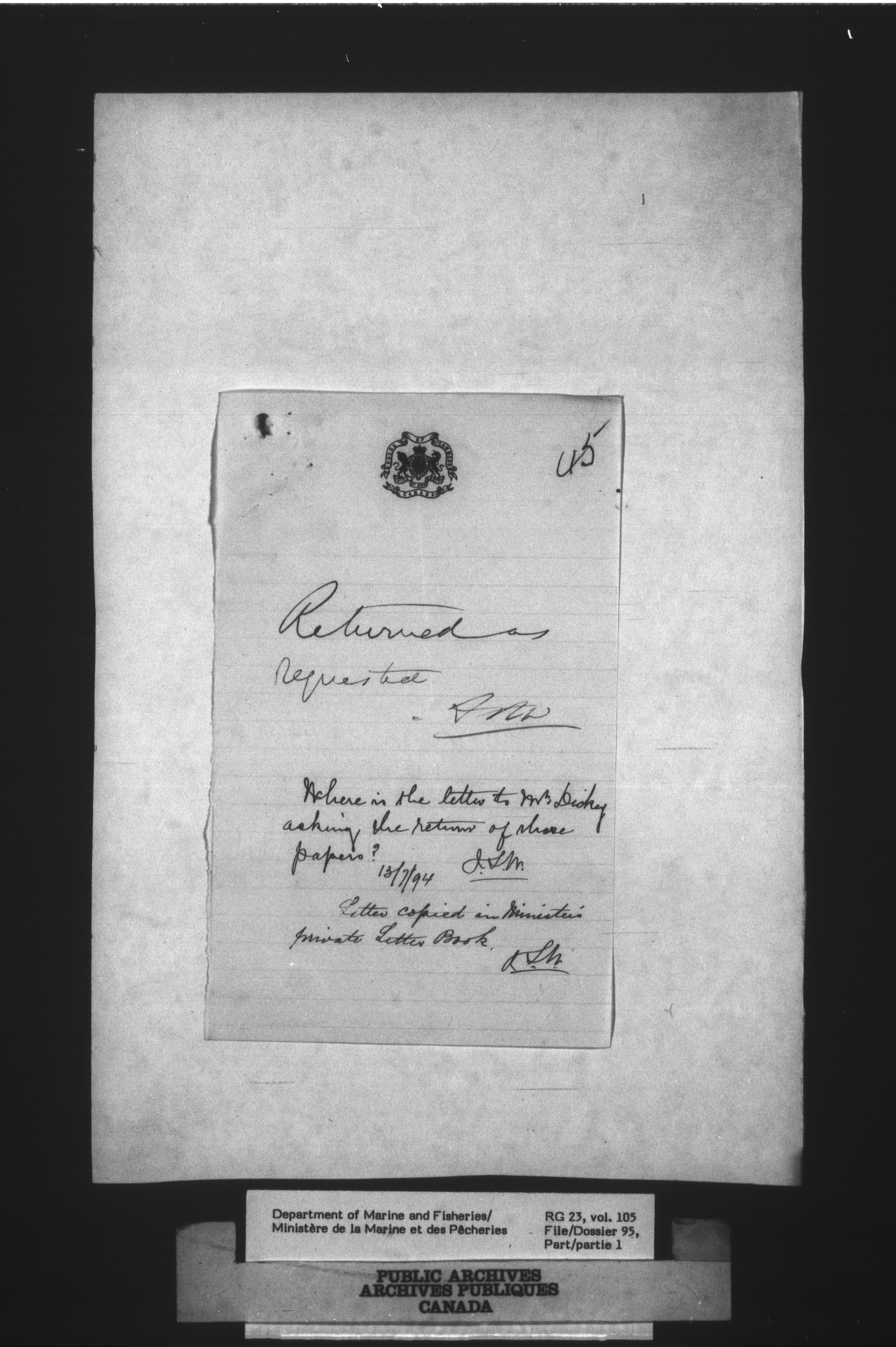 Fisheries Branch Registry files - 2719
