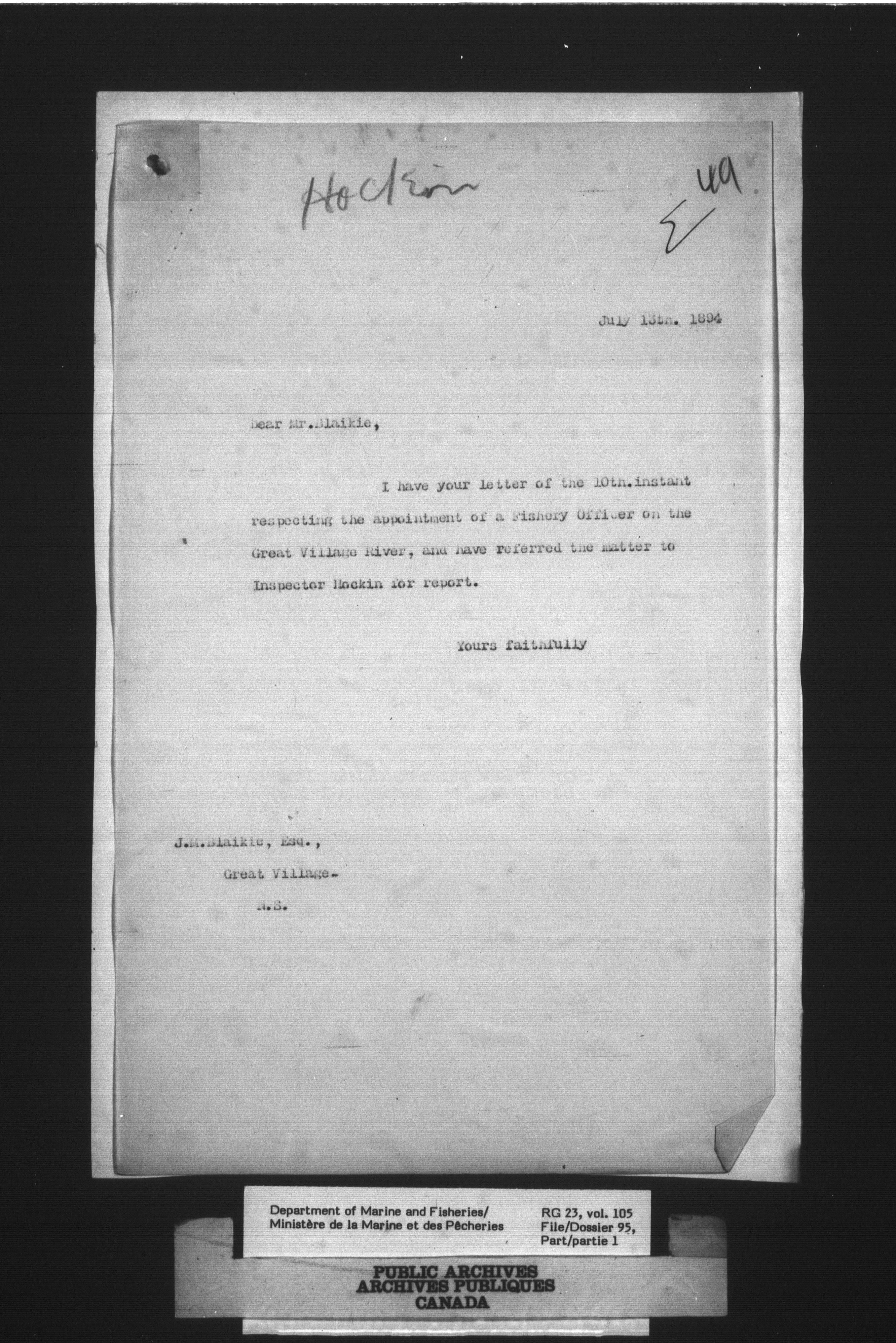 Fisheries Branch Registry files - 2719