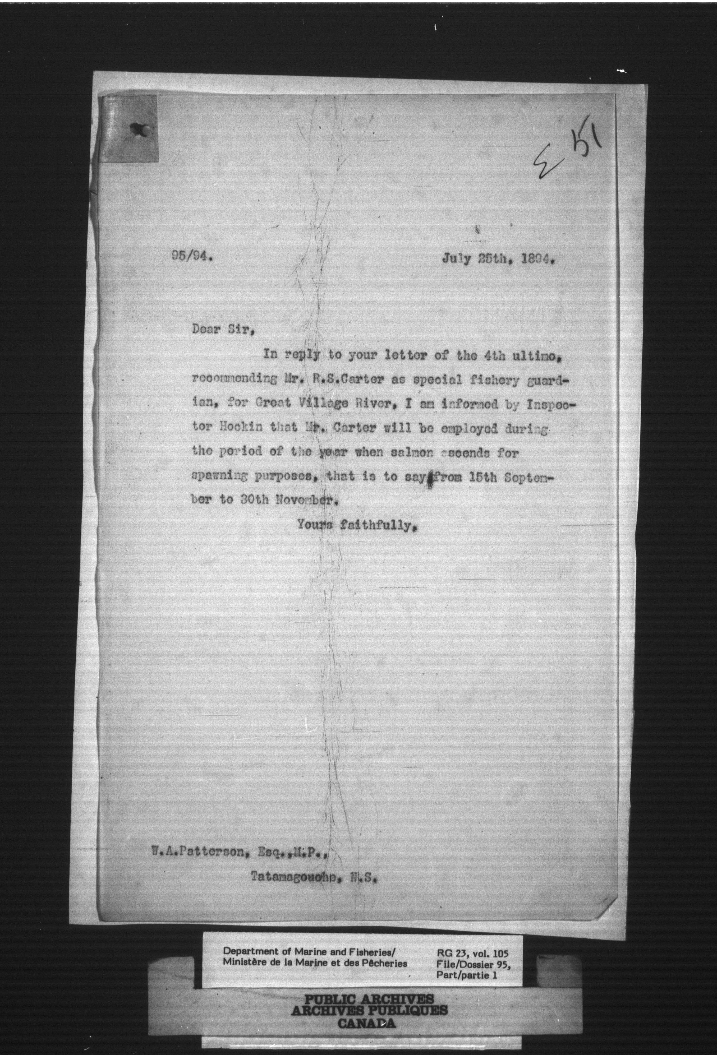 Fisheries Branch Registry files - 2719