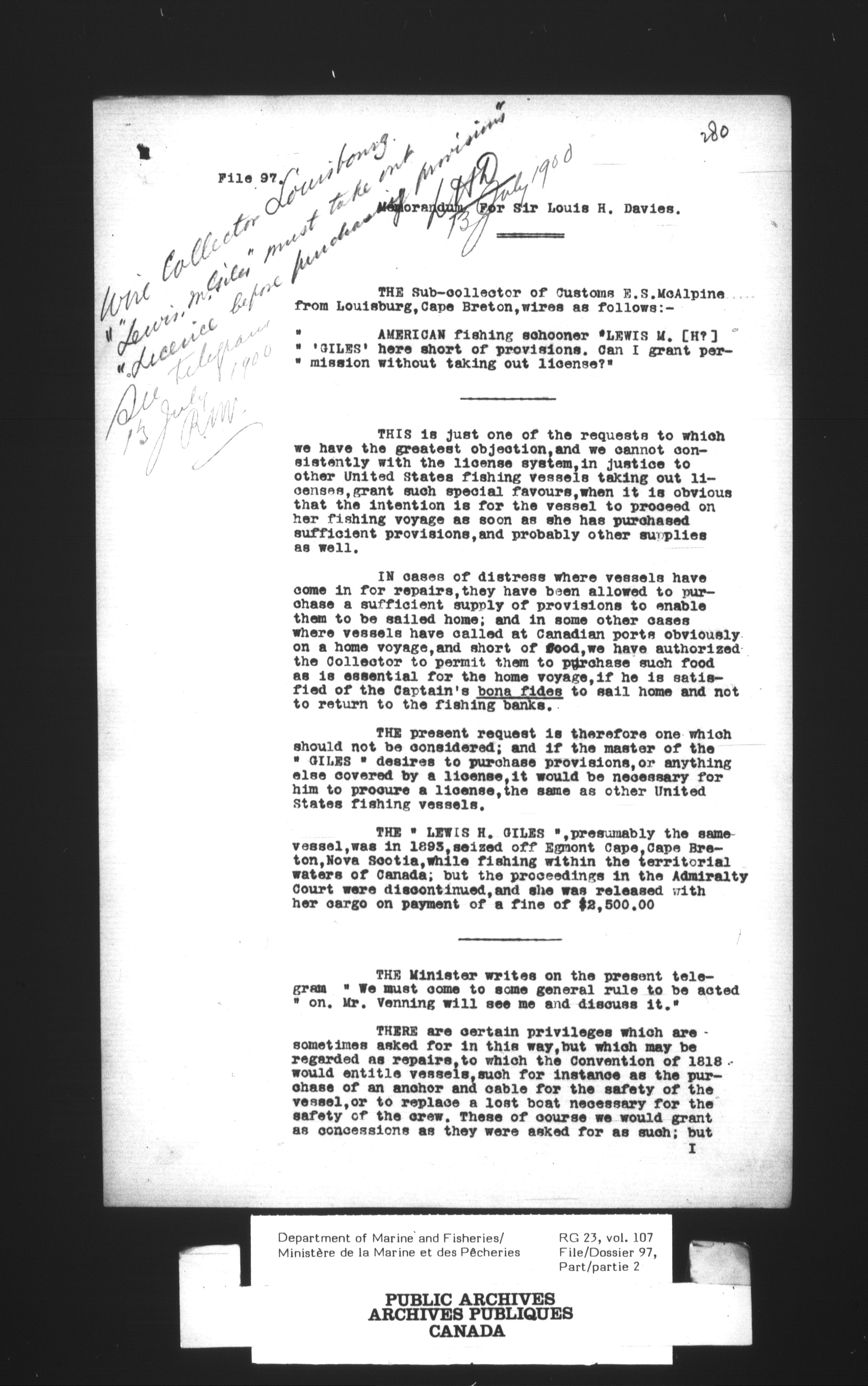Fisheries Branch Registry files - 2721