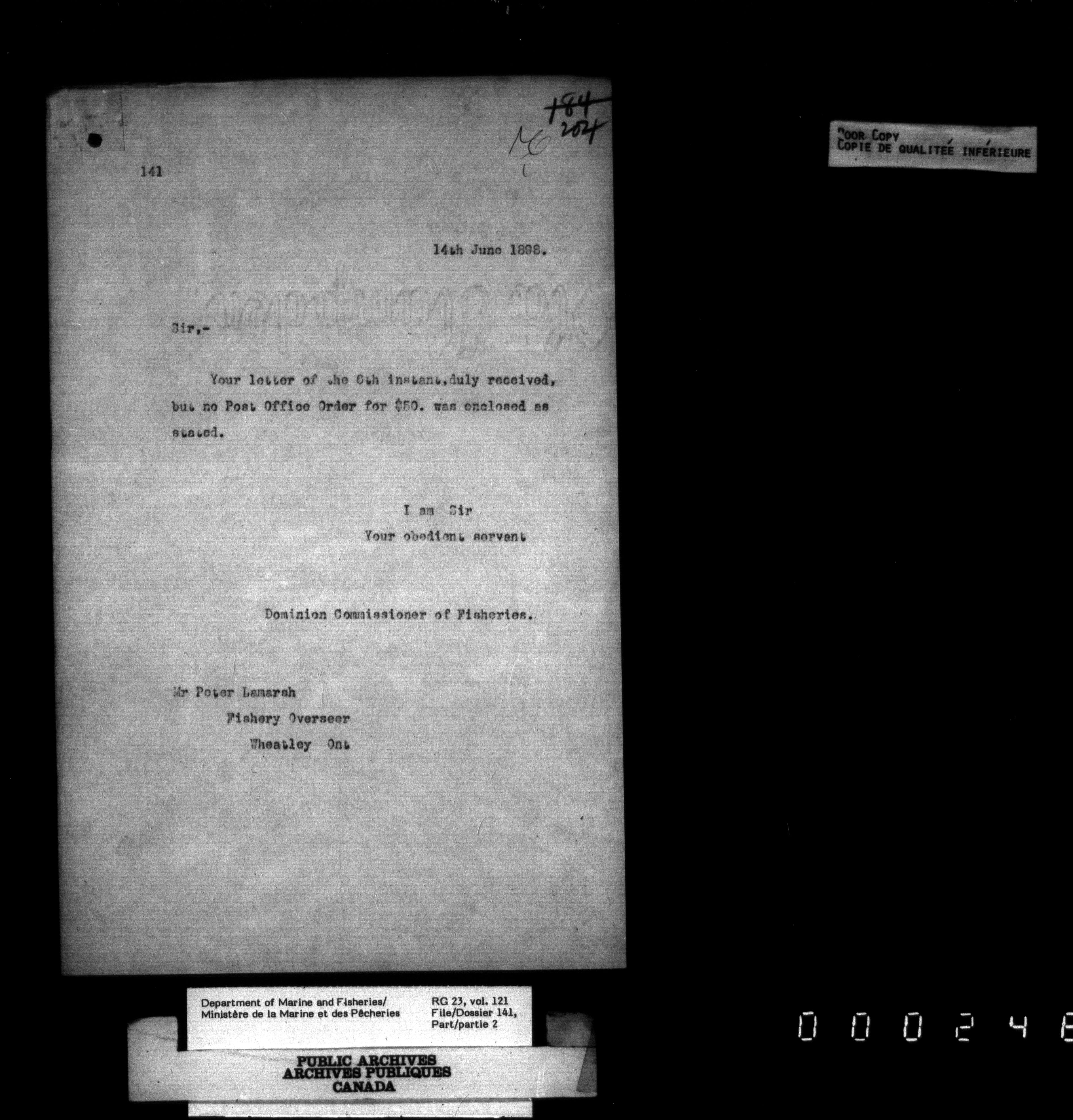 Fisheries Branch Registry files - 2734