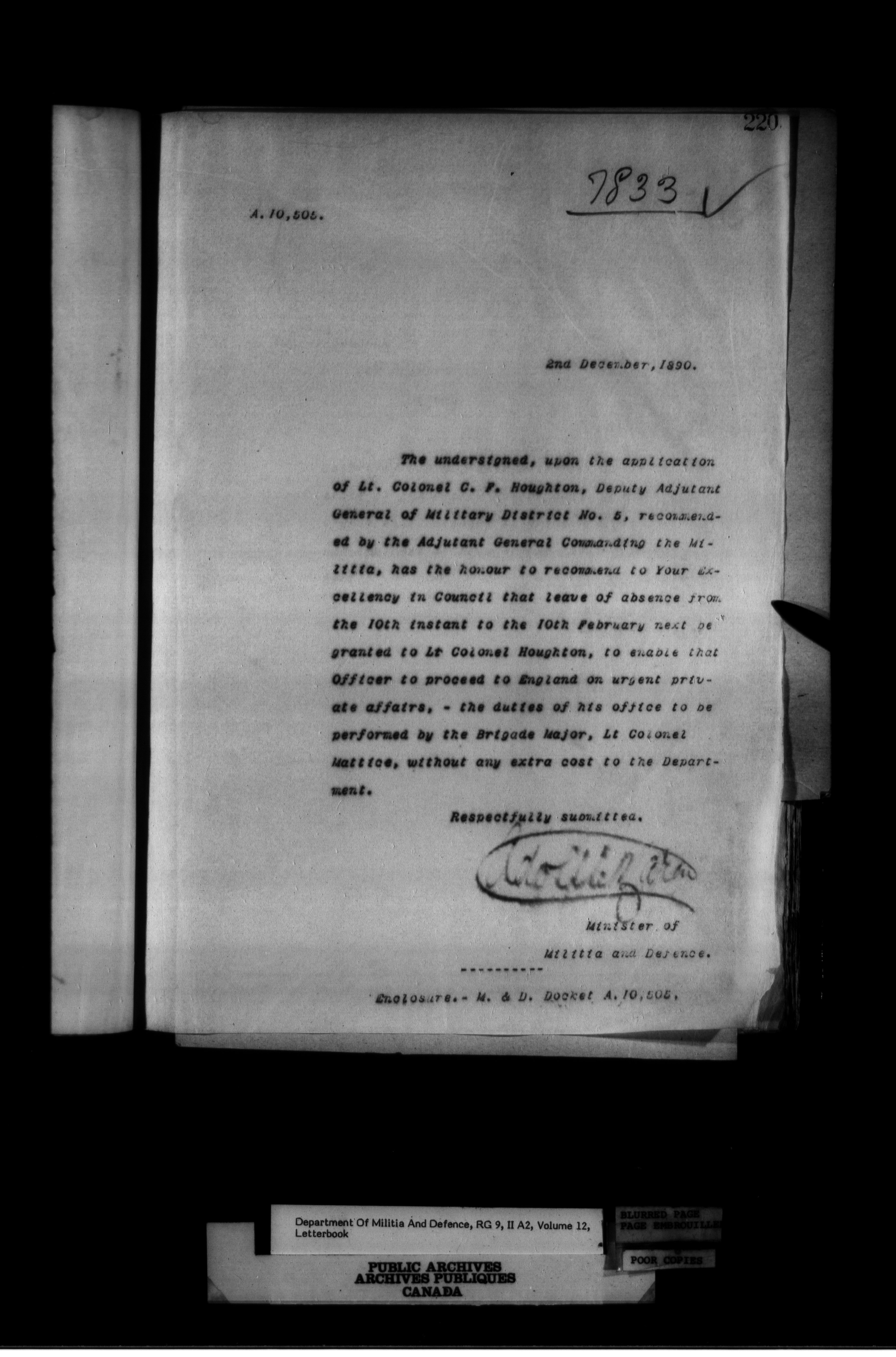 Department of Militia and Defence : reports and memoranda of the Deputy Minister's office, 1867-1907 : T-274