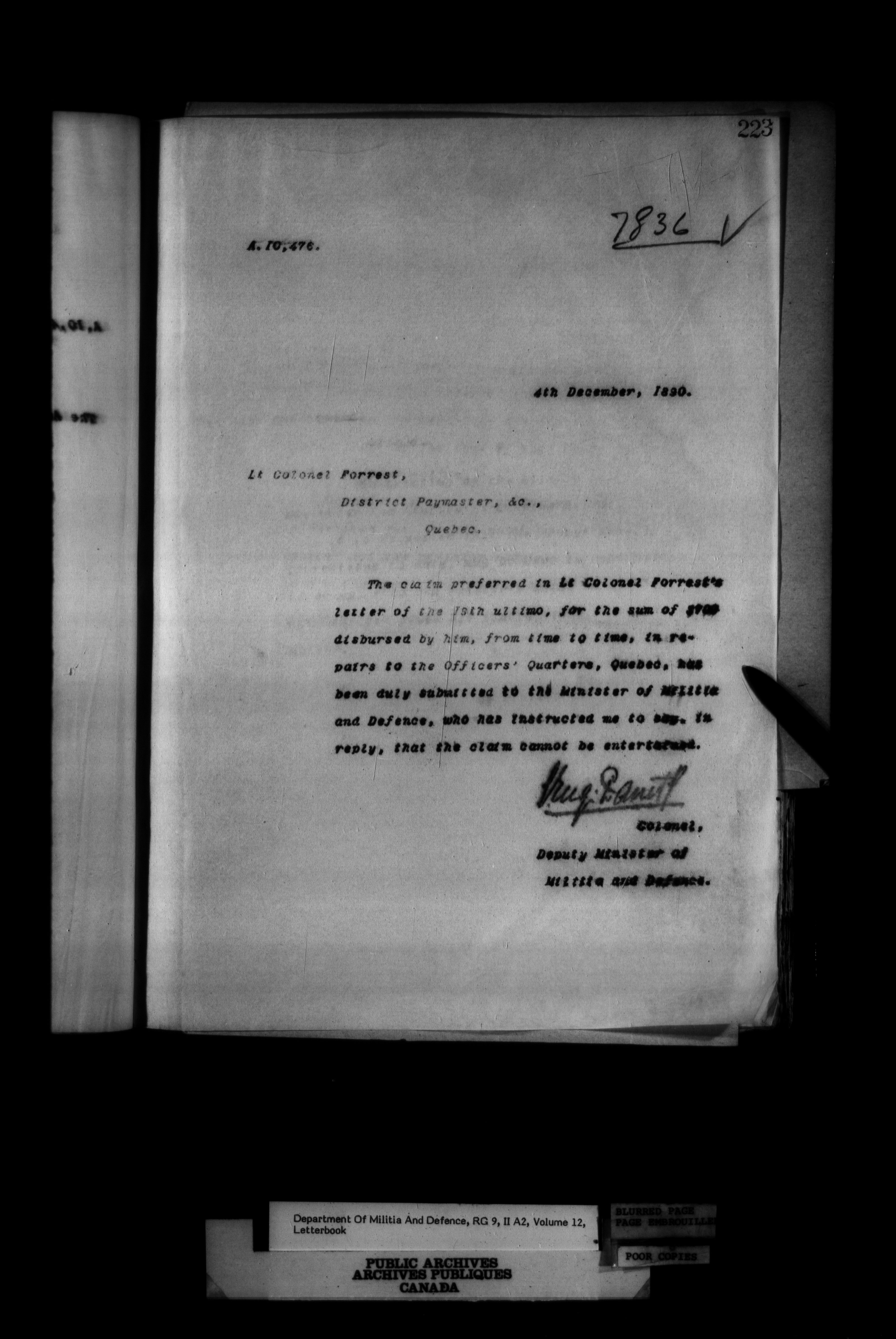 Department of Militia and Defence : reports and memoranda of the Deputy Minister's office, 1867-1907 : T-274