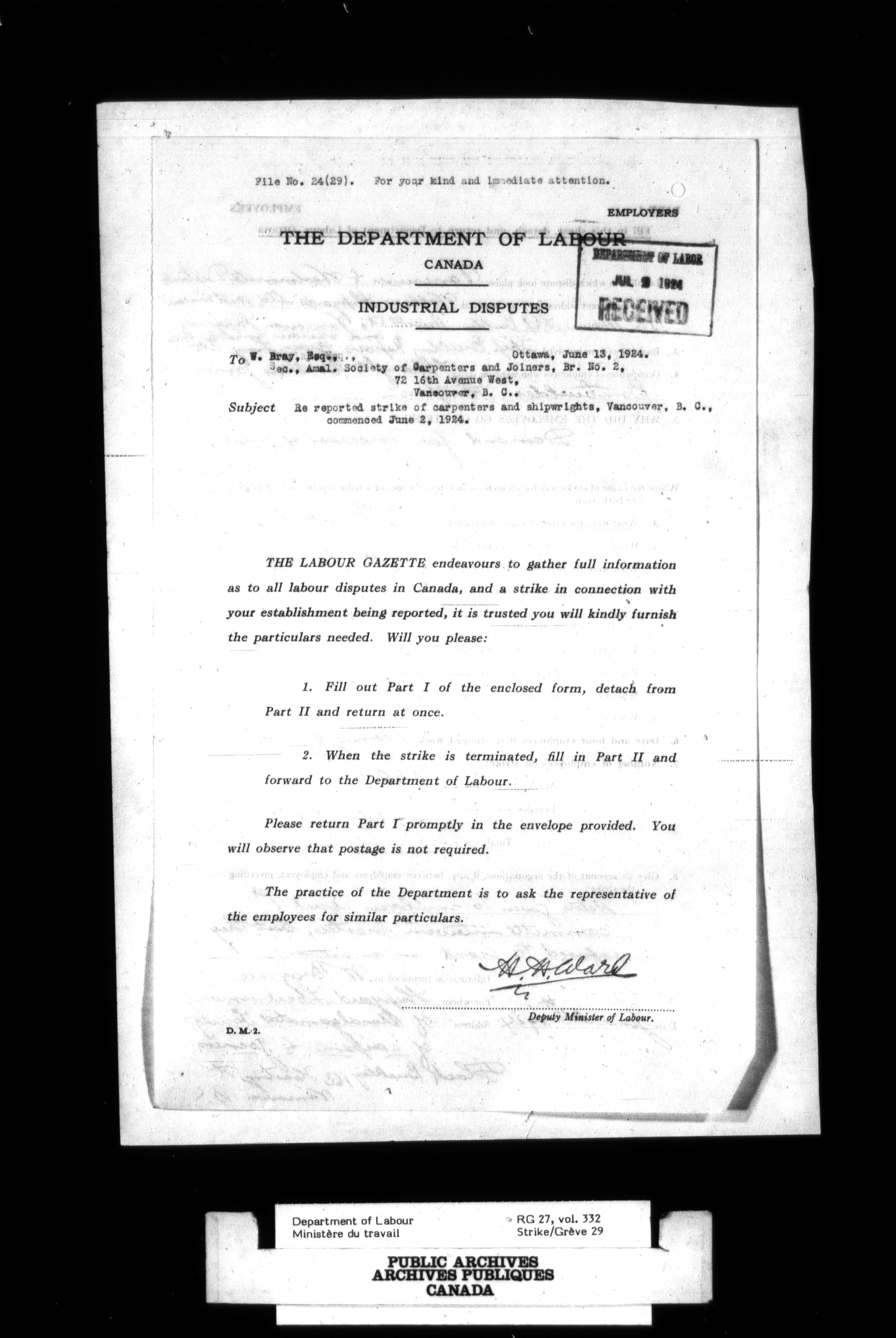 Department of Labour, Economics and Research Branch : Strikes and lockout files - 2744