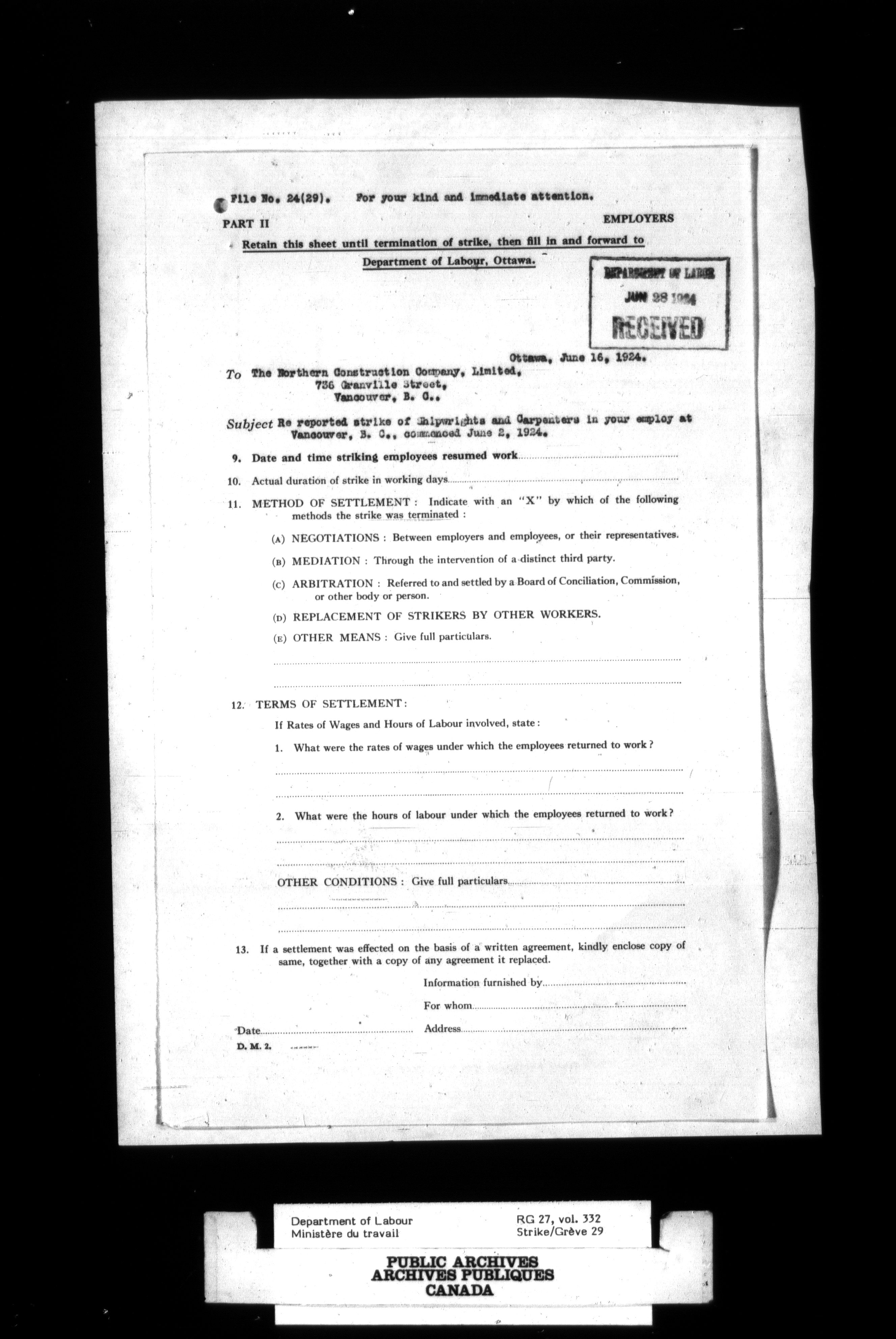 Department of Labour, Economics and Research Branch : Strikes and lockout files - 2744