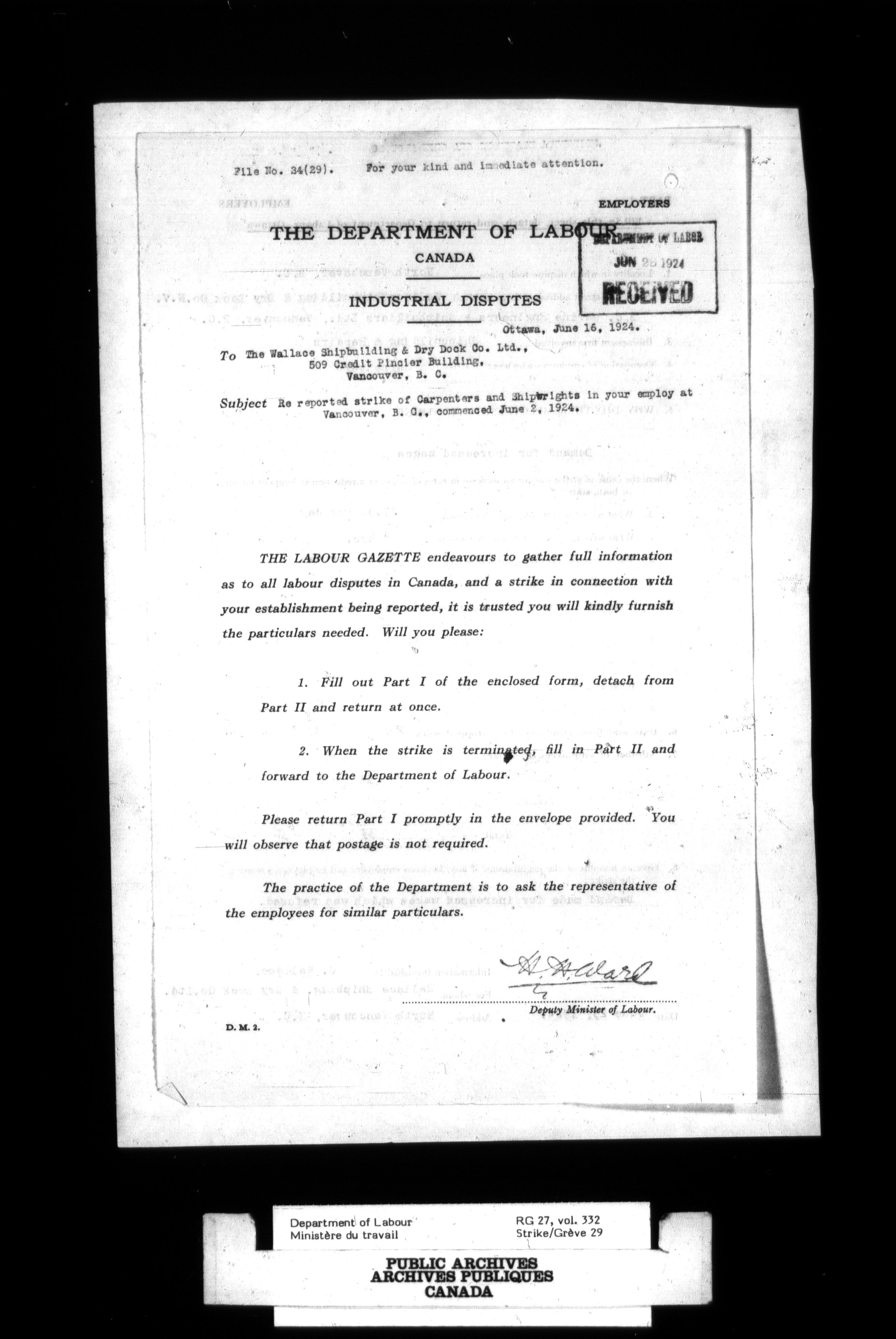 Department of Labour, Economics and Research Branch : Strikes and lockout files - 2744
