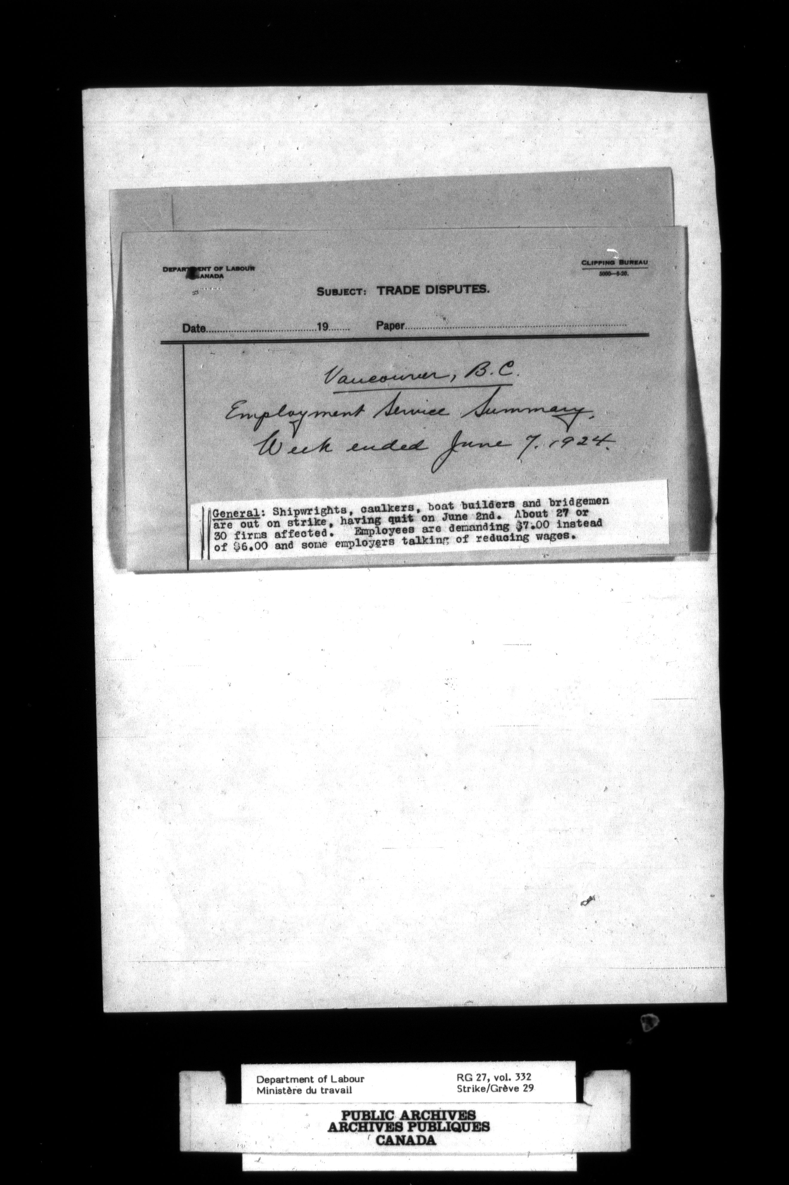 Department of Labour, Economics and Research Branch : Strikes and lockout files - 2744