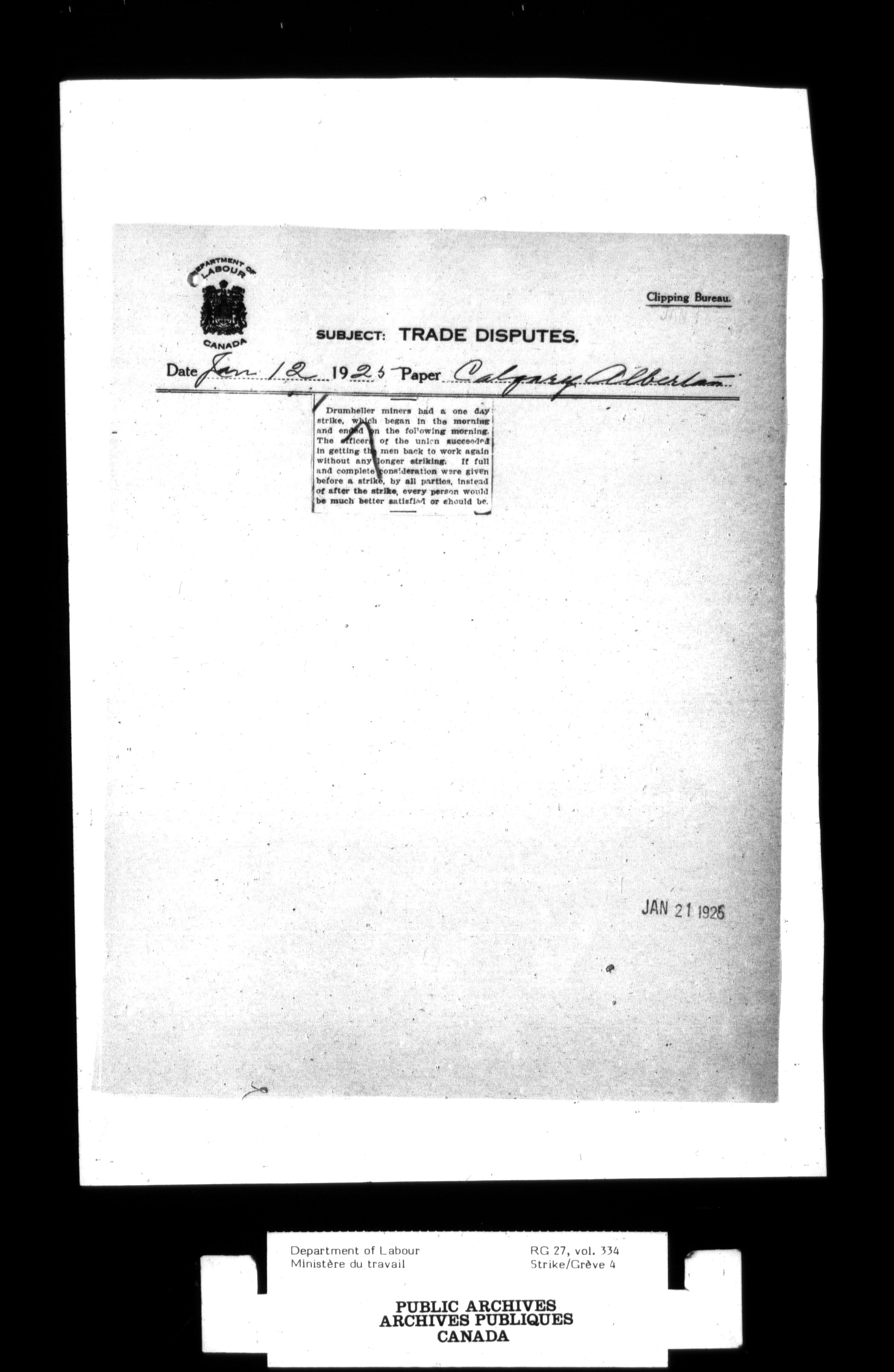 Department of Labour, Economics and Research Branch : Strikes and lockout files - 2746