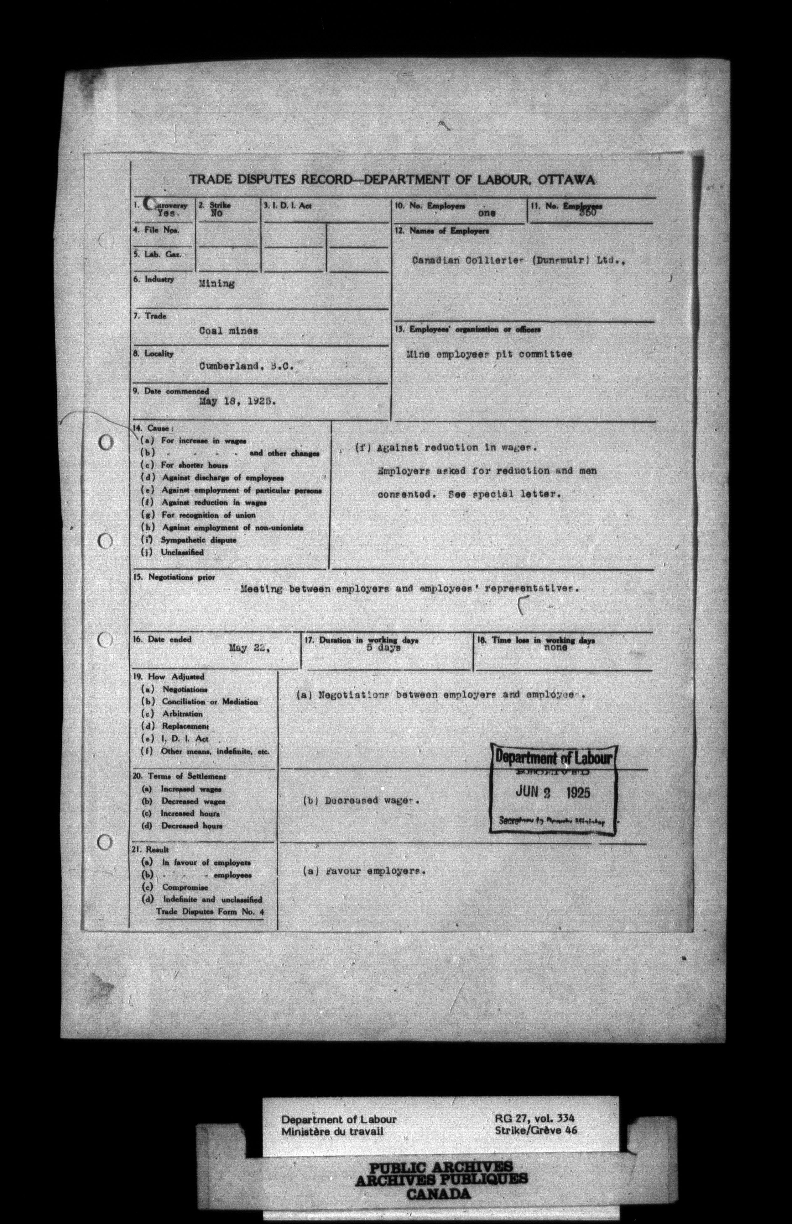 Department of Labour, Economics and Research Branch : Strikes and lockout files - 2746
