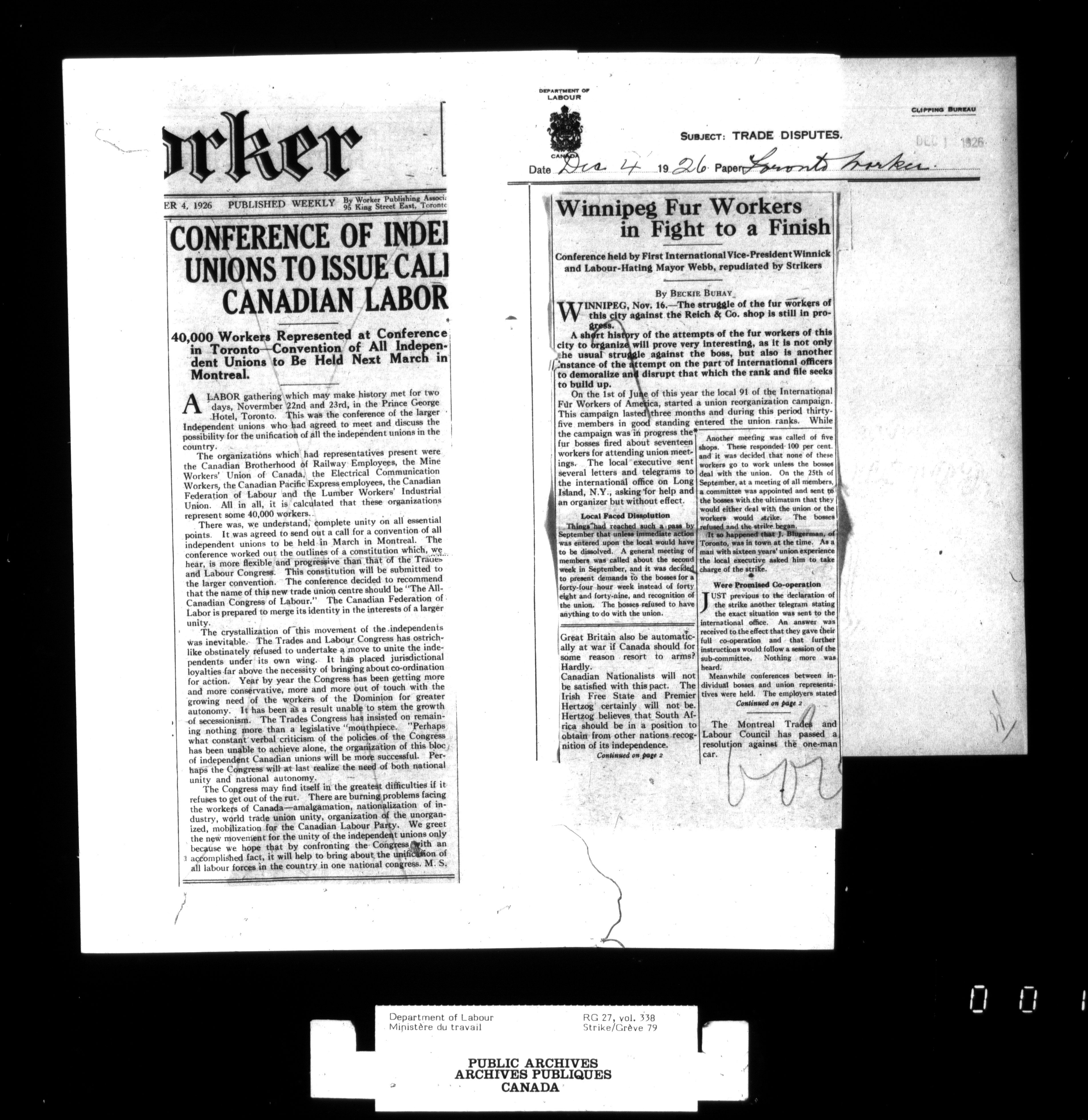 Department of Labour, Economics and Research Branch : Strikes and lockout files - 2749