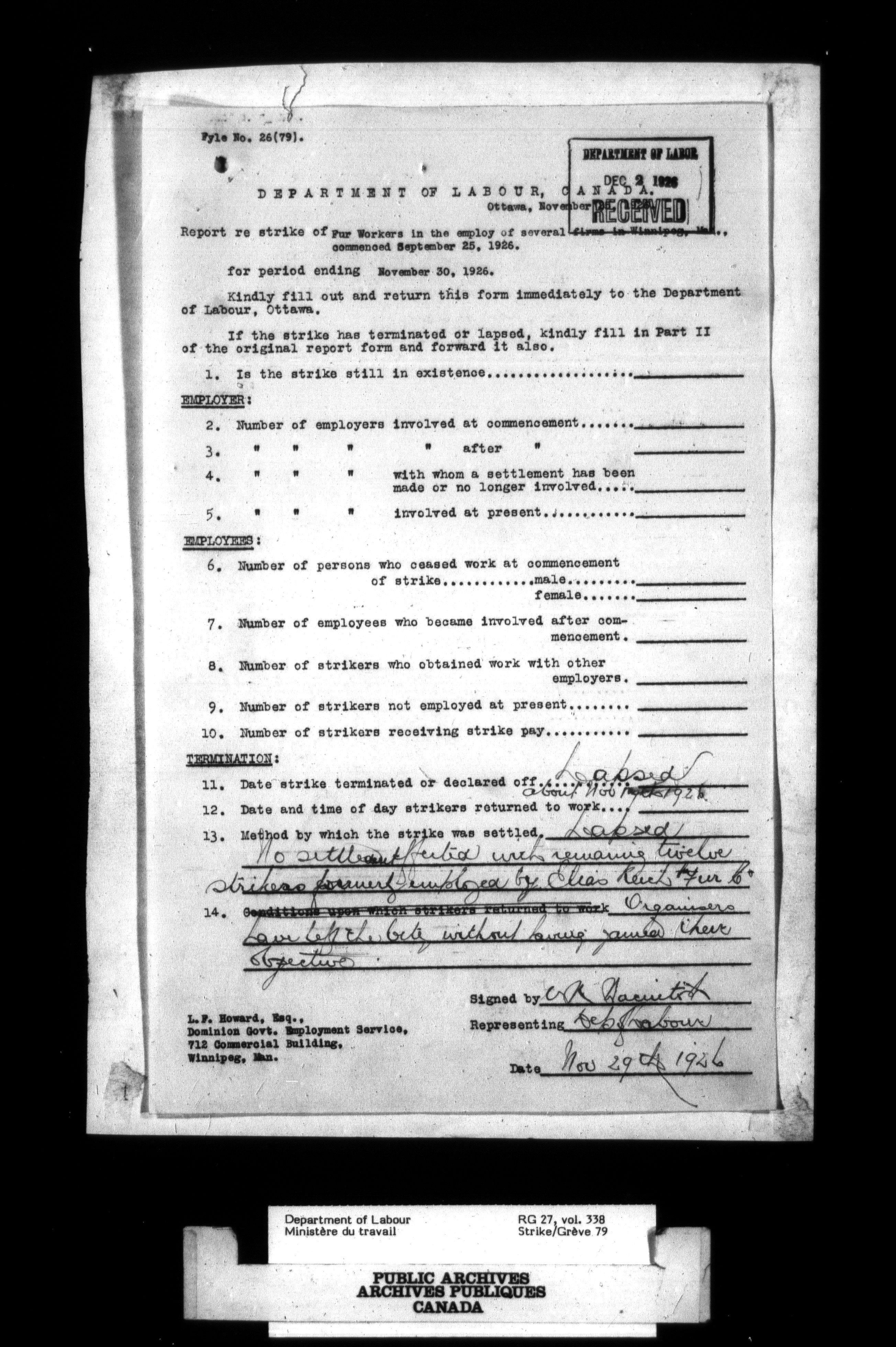 Department of Labour, Economics and Research Branch : Strikes and lockout files - 2749