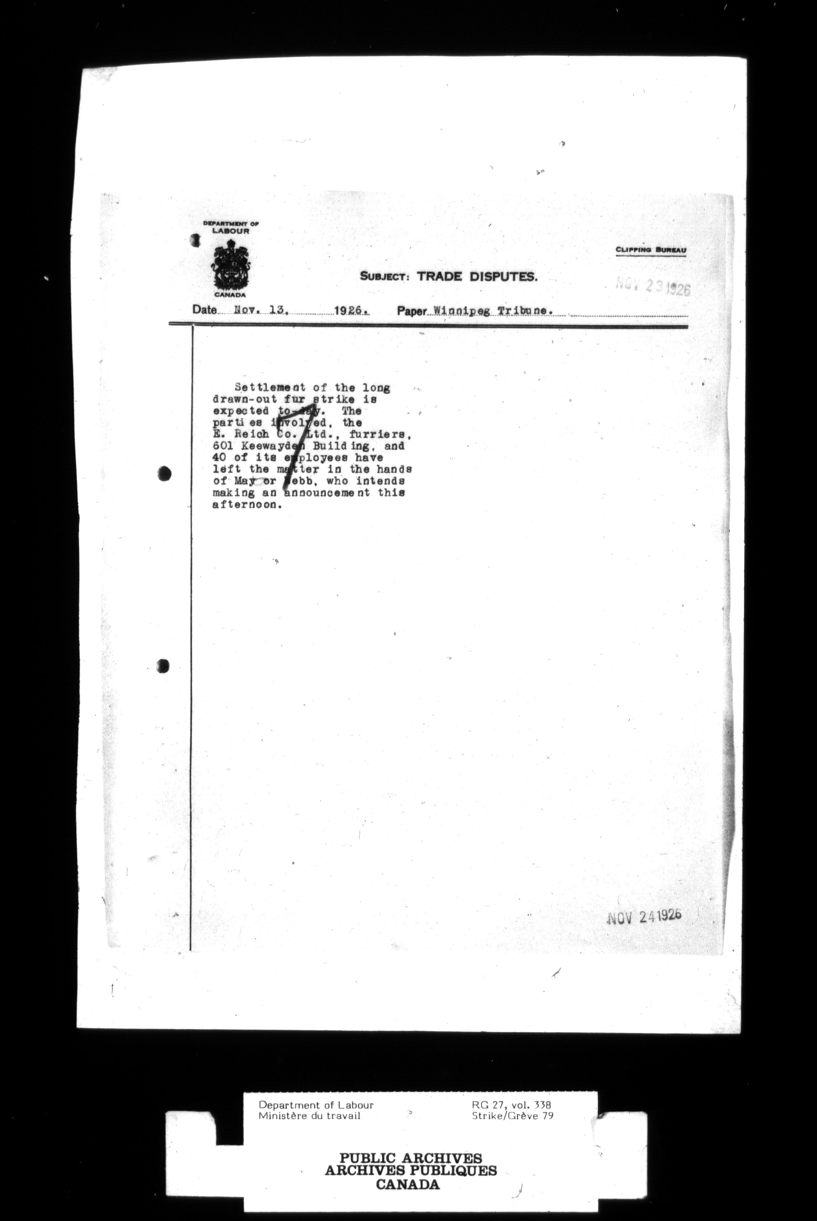 Department of Labour, Economics and Research Branch : Strikes and lockout files - 2749