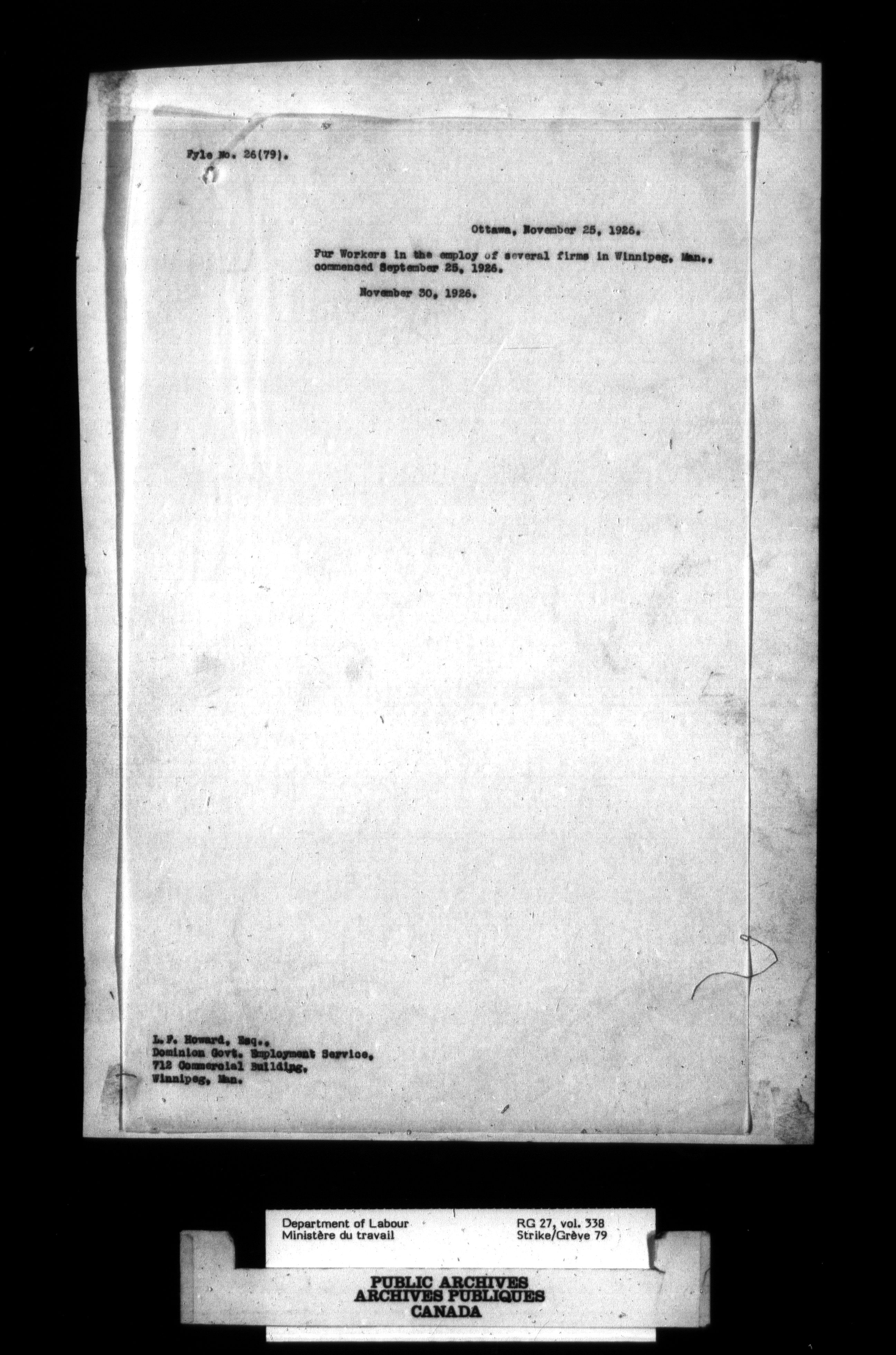 Department of Labour, Economics and Research Branch : Strikes and lockout files - 2749