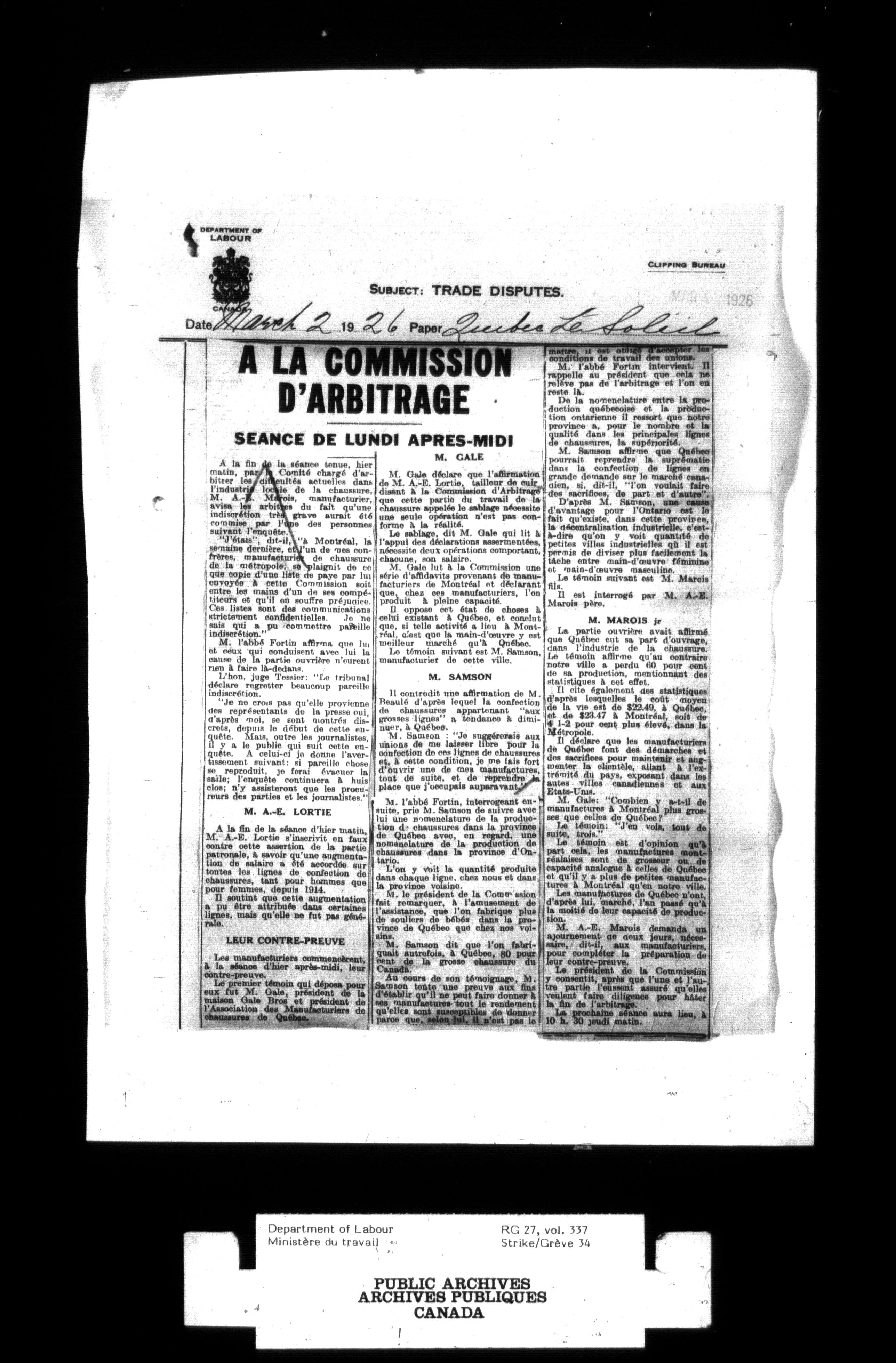 Department of Labour, Economics and Research Branch : Strikes and lockout files - 2749