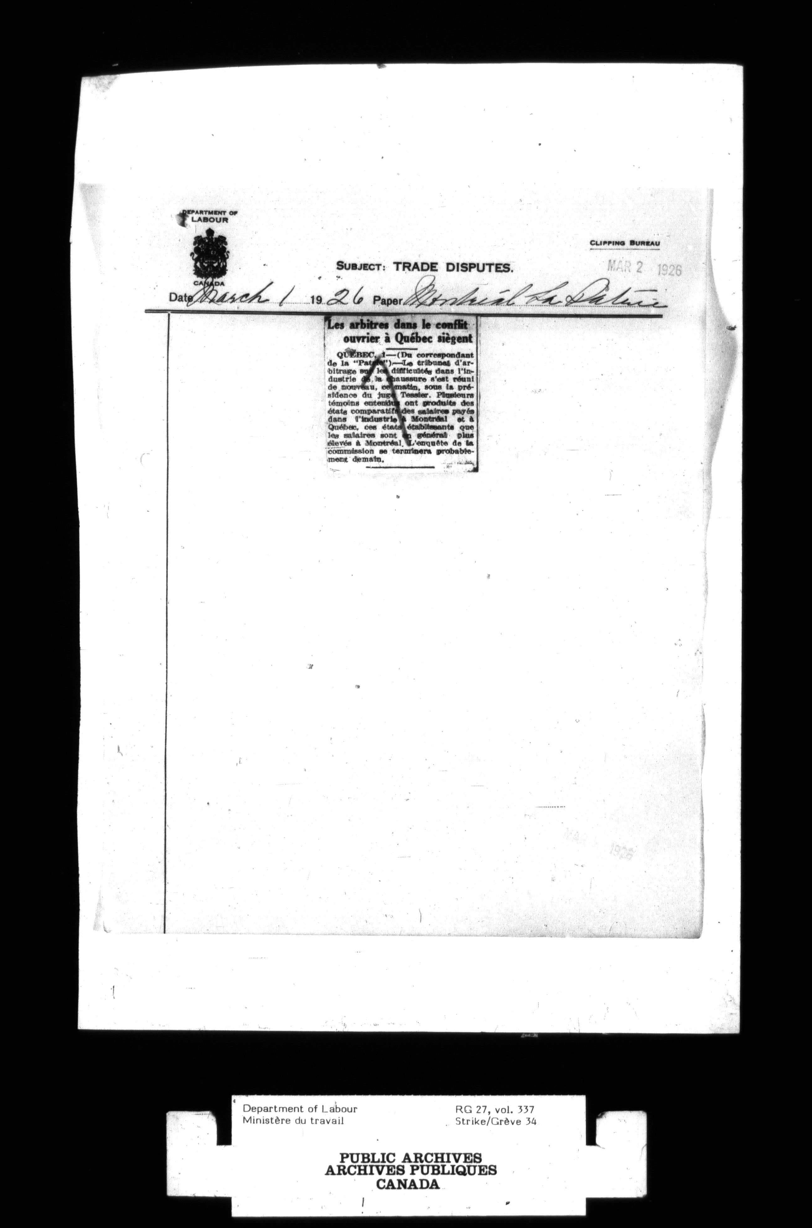Department of Labour, Economics and Research Branch : Strikes and lockout files - 2749