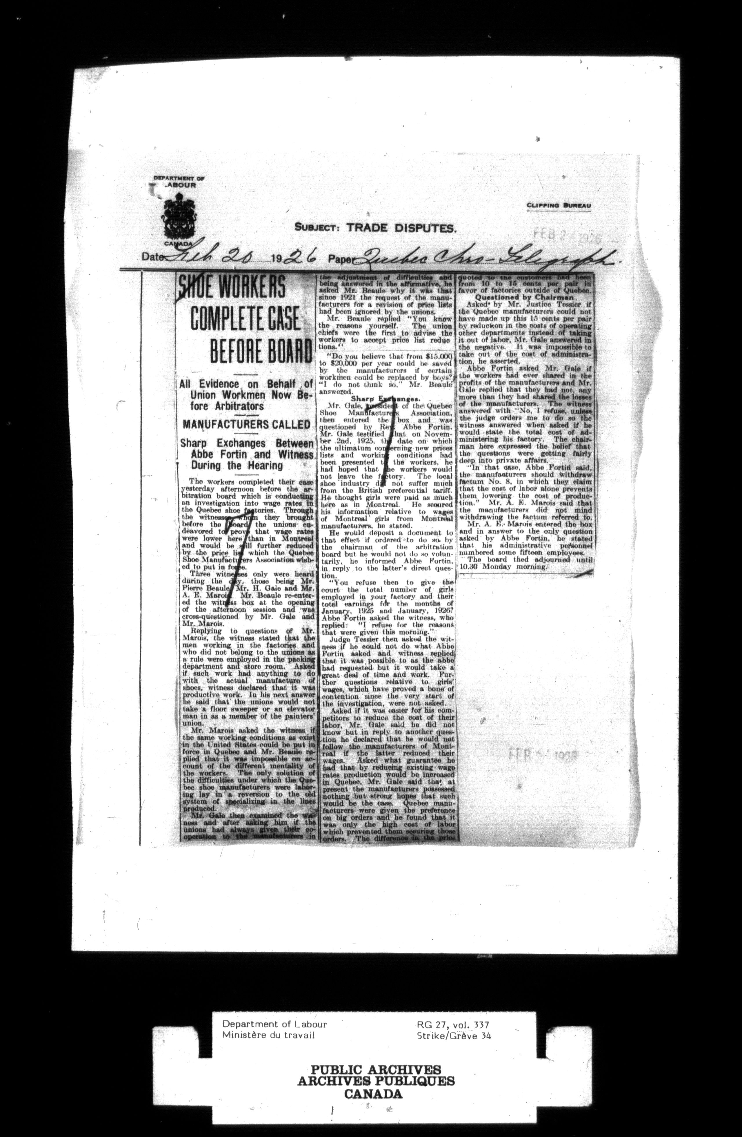Department of Labour, Economics and Research Branch : Strikes and lockout files - 2749
