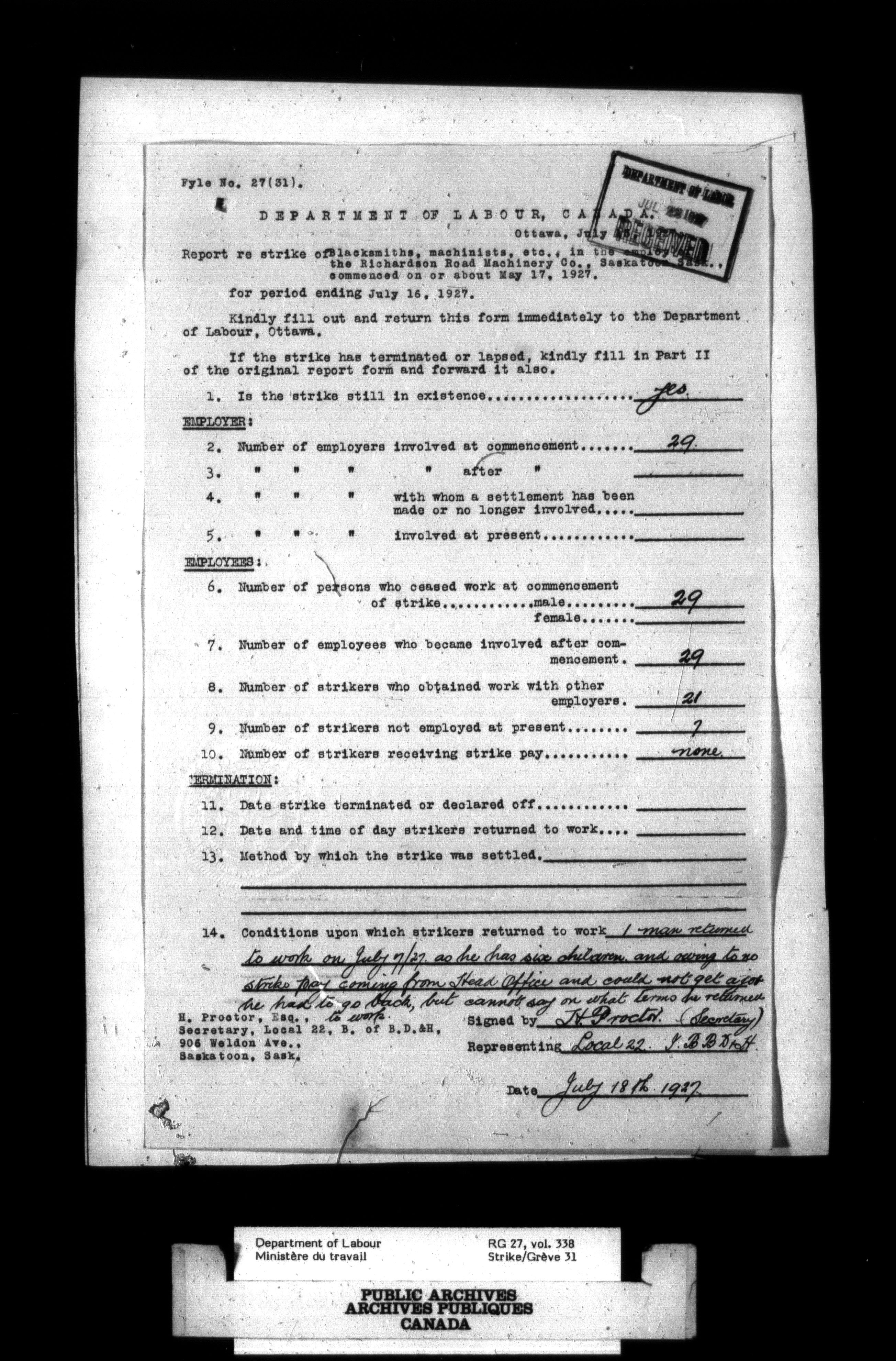 Department of Labour, Economics and Research Branch : Strikes and lockout files - 2750