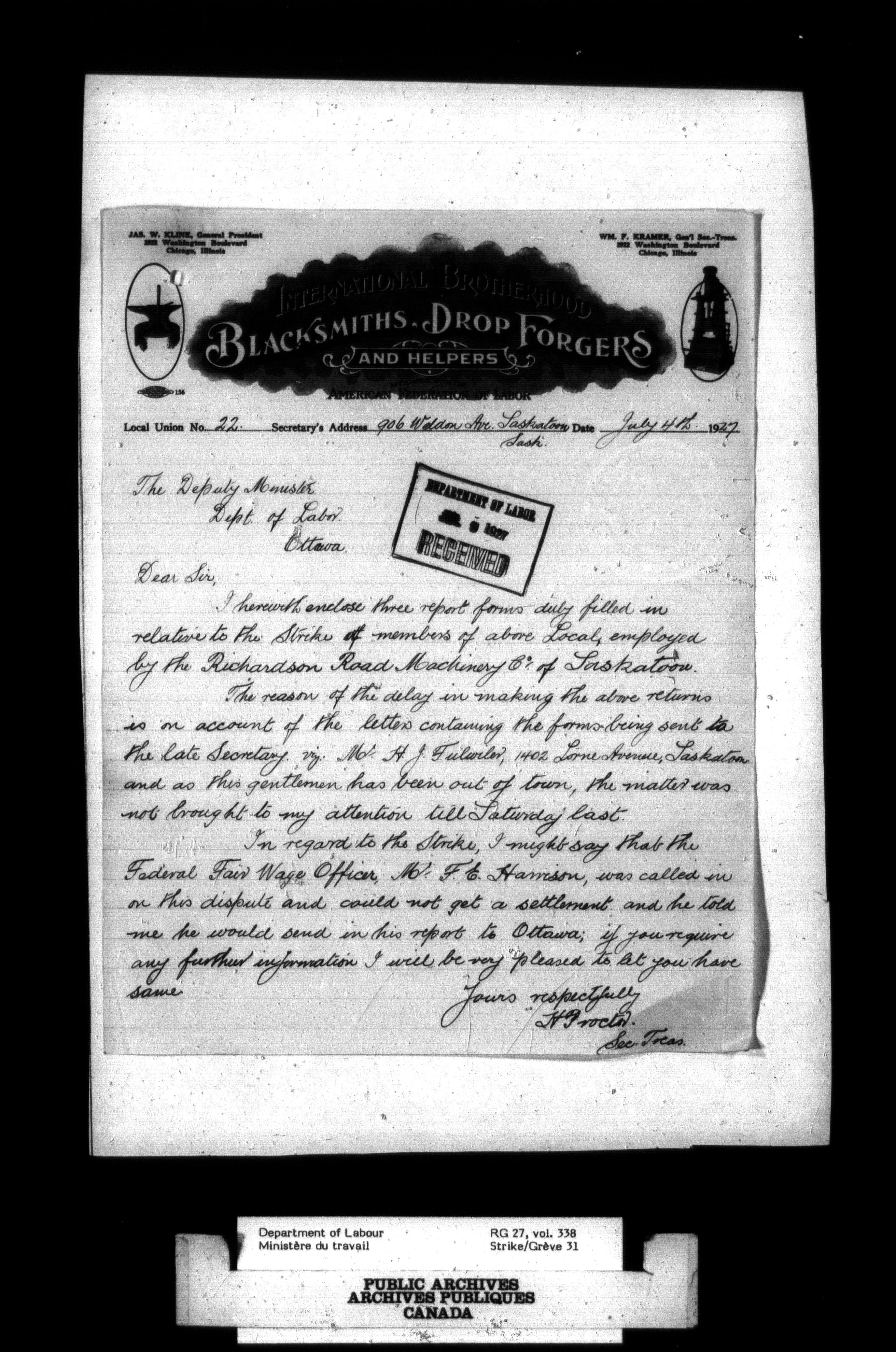 Department of Labour, Economics and Research Branch : Strikes and lockout files - 2750