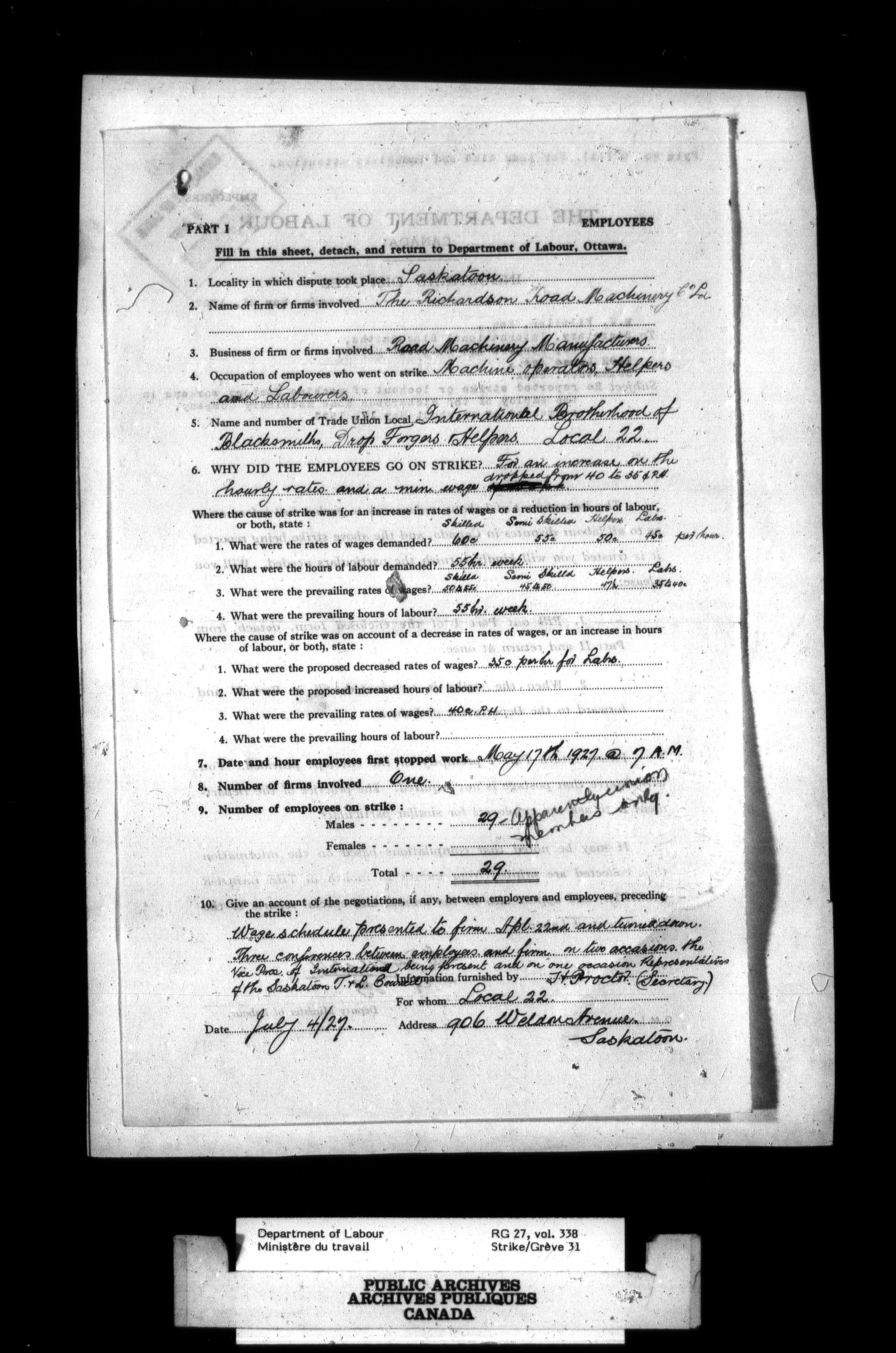 Department of Labour, Economics and Research Branch : Strikes and lockout files - 2750